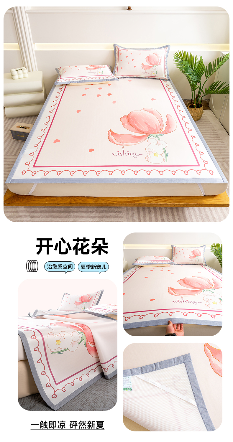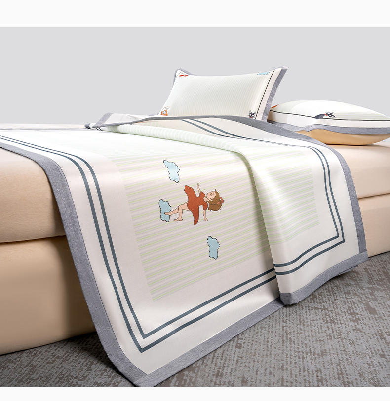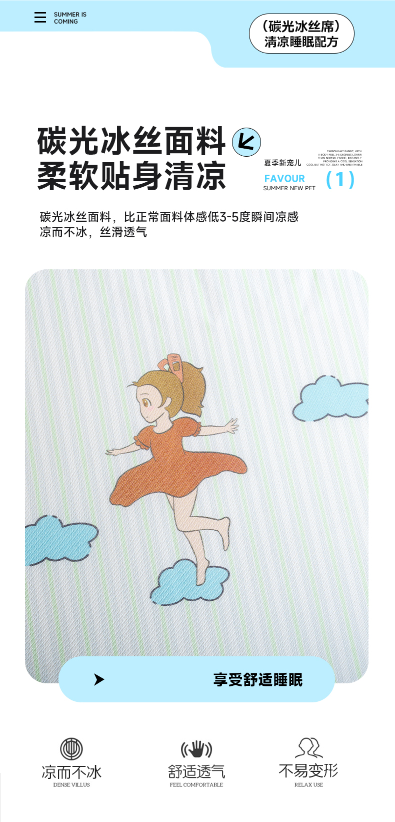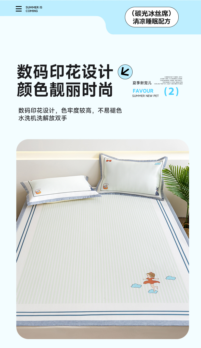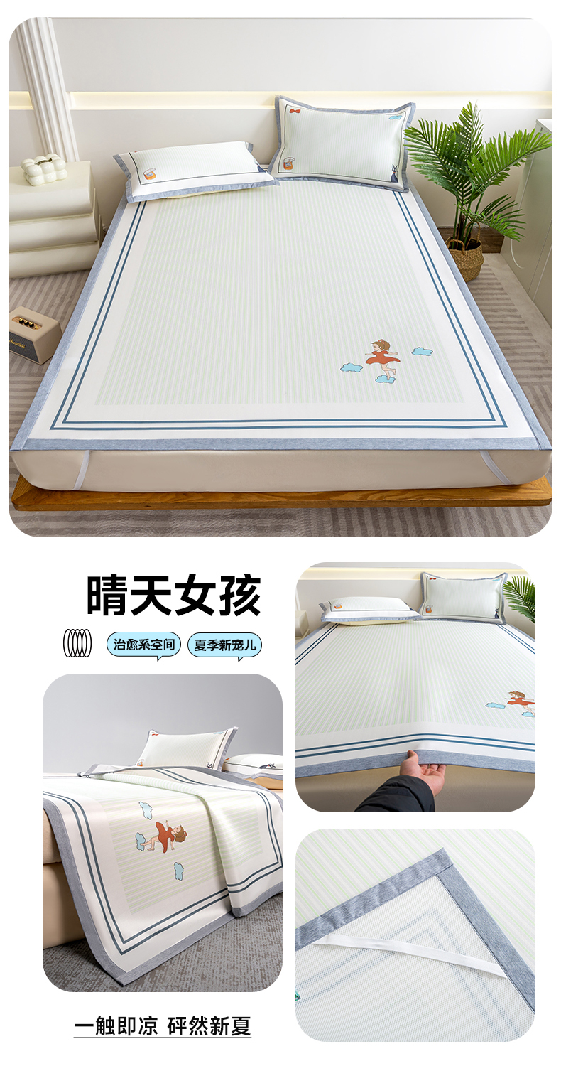 商品名称:邵依家纺 2025新款数码印花烫光冰丝席凉席子藤席场景二 晴天女孩