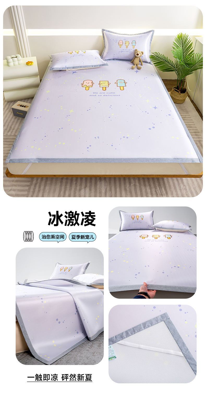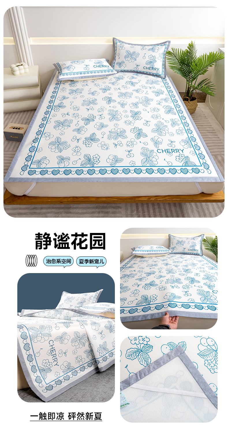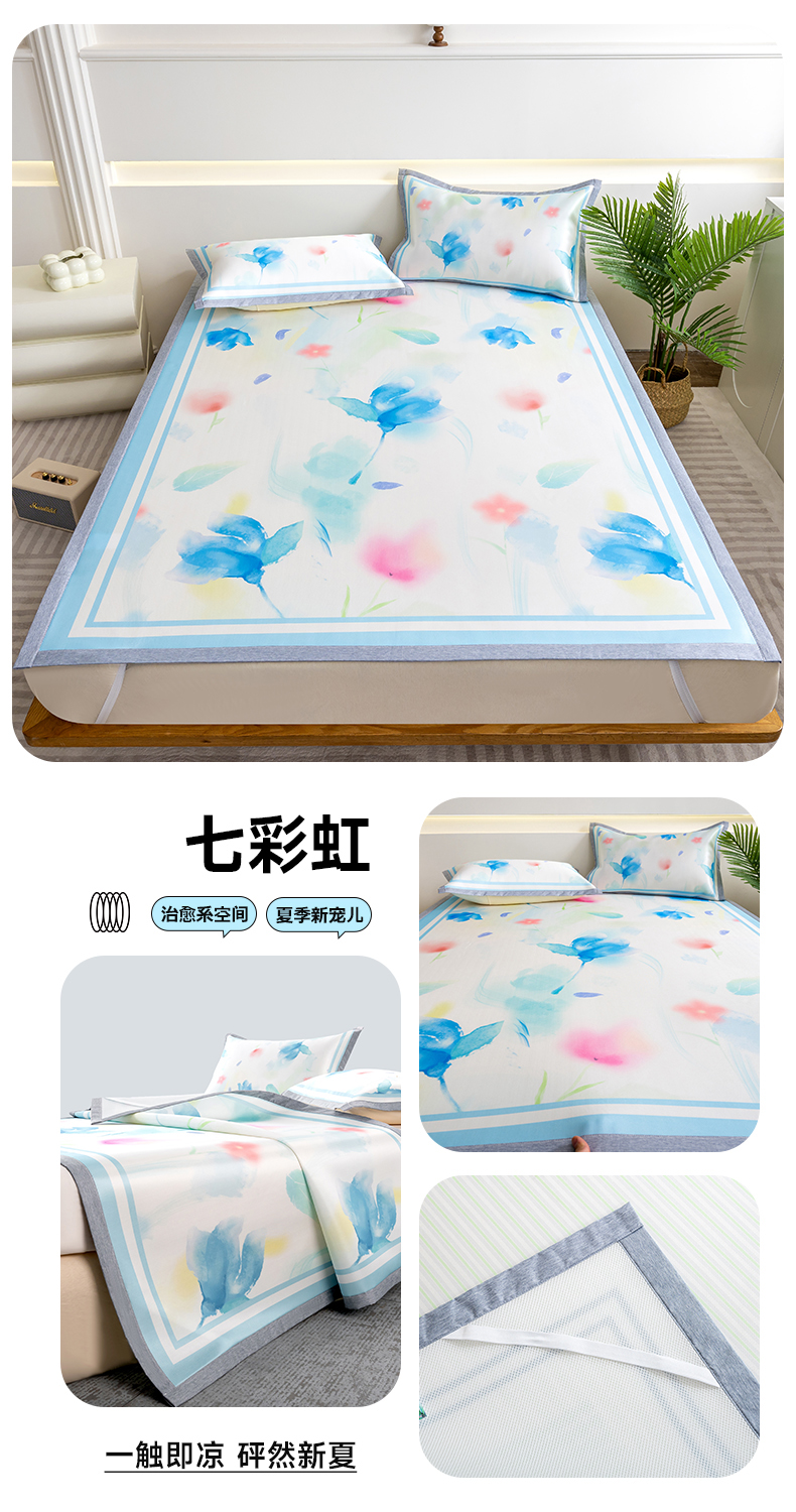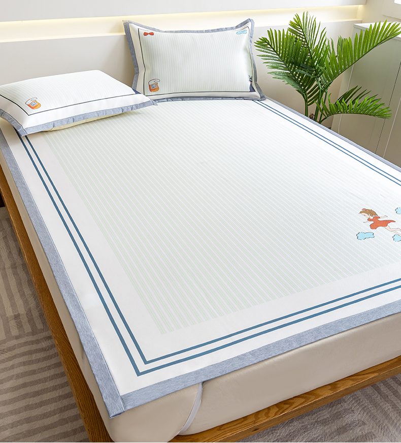 商品名称:邵依家纺 2025新款数码印花烫光冰丝席凉席子藤席场景二 晴天女孩