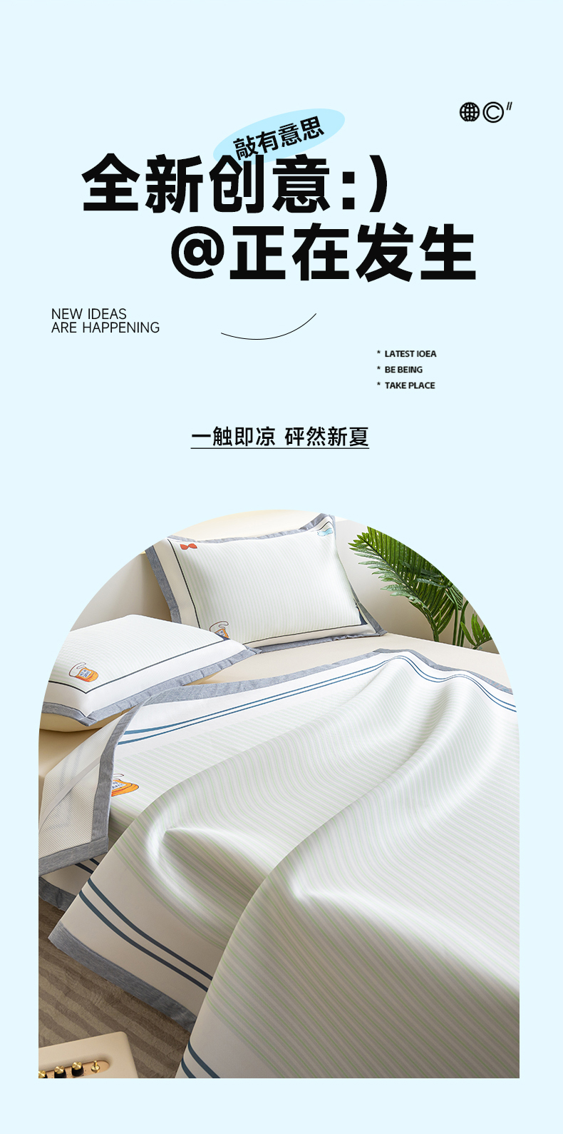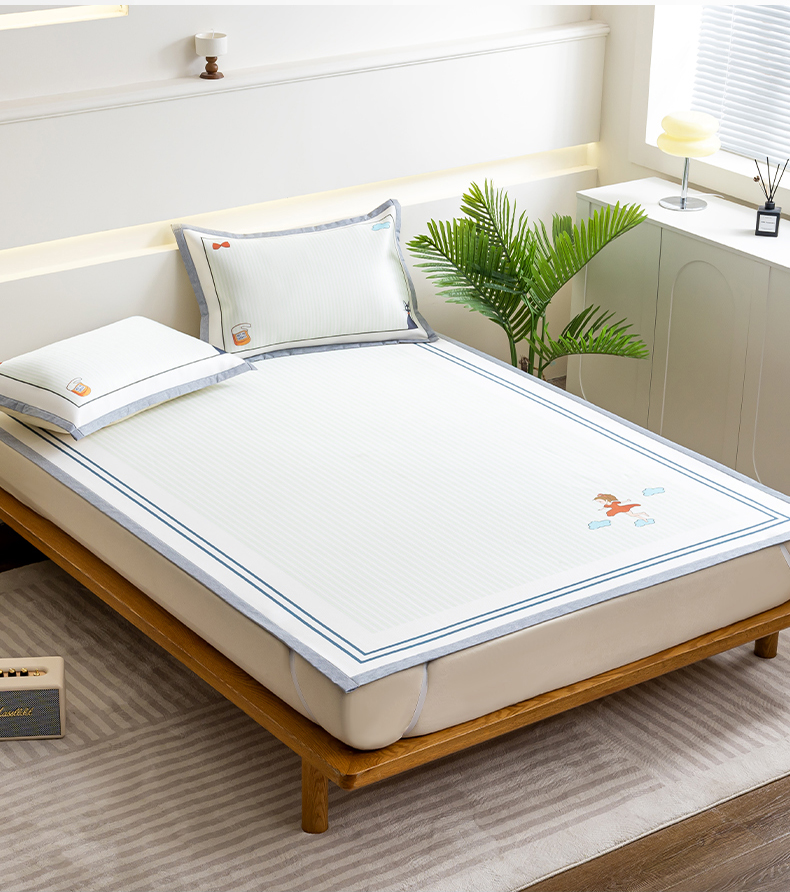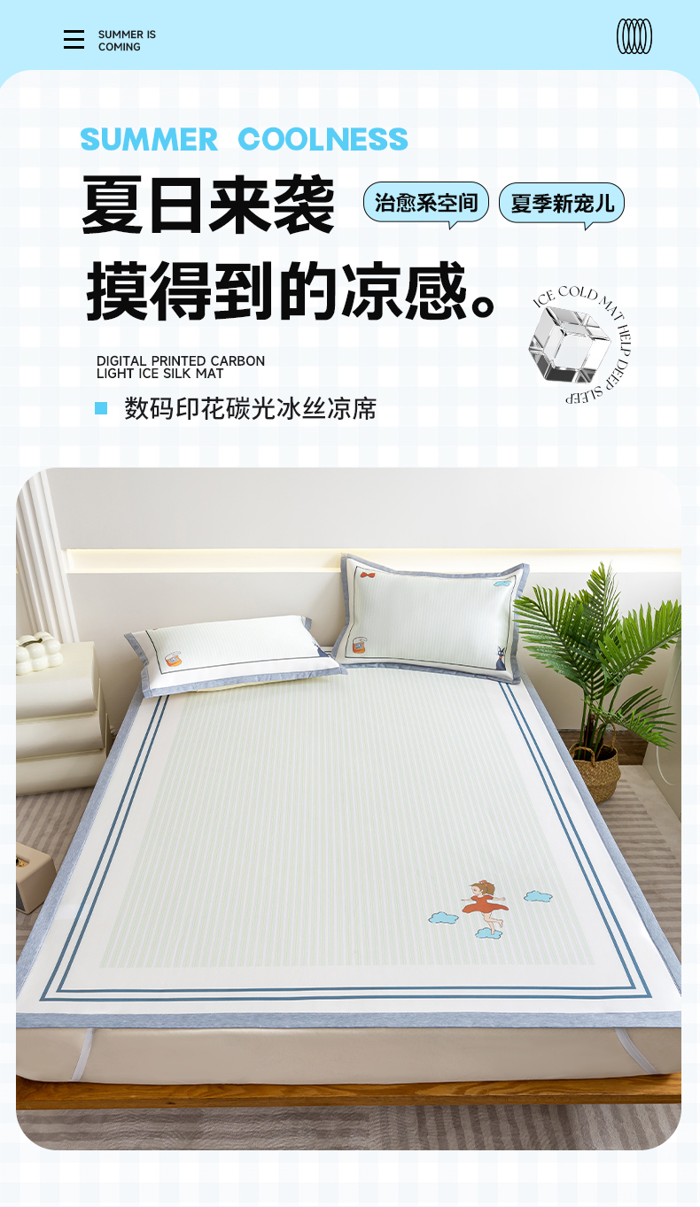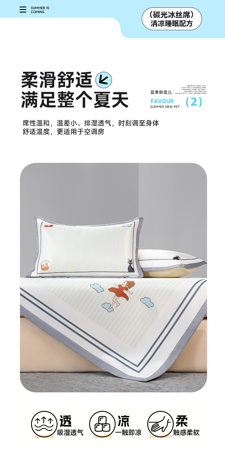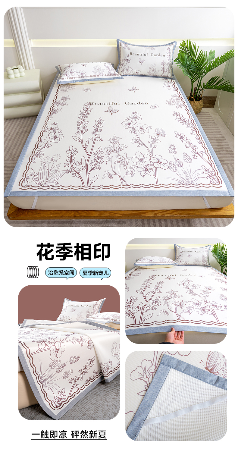 商品名称:邵依家纺 2025新款数码印花烫光冰丝席凉席子藤席场景二 晴天女孩
