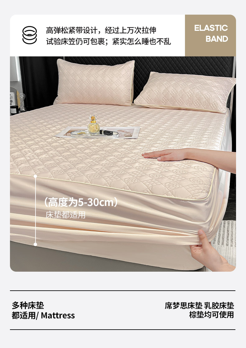 (总)2025A类母婴级长绒棉夹棉床笠三件套纯棉全棉加厚席梦思床罩床套四季款保护罩,茶绿,黛紫,慕蓝,奶玉,颜粉