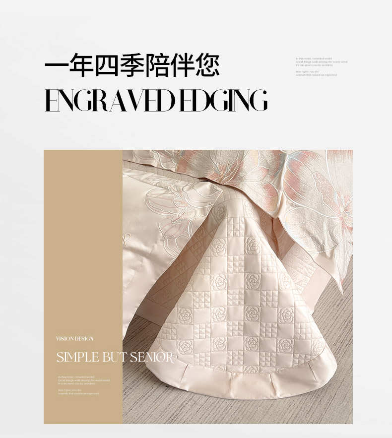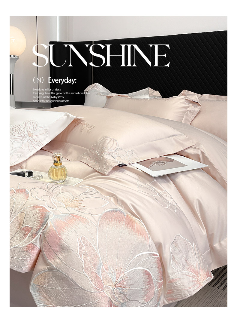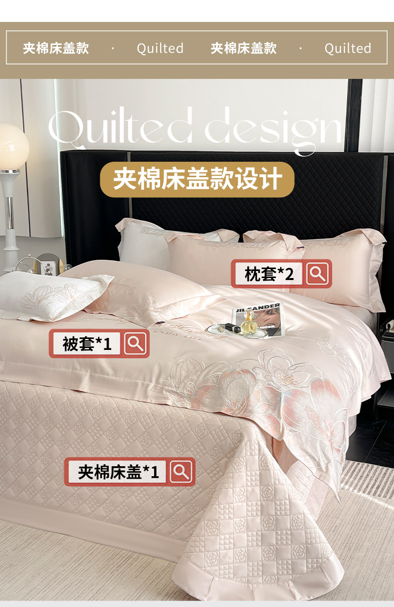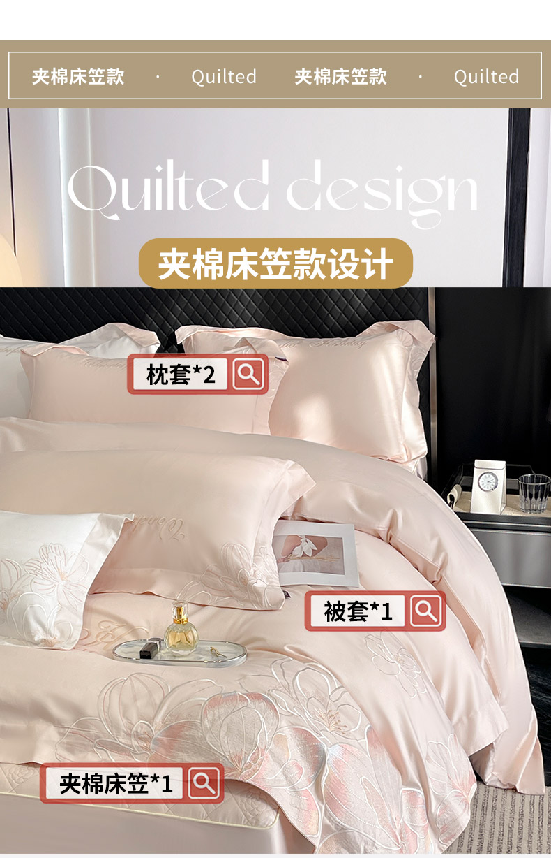 2025新款轻奢风A类100支长绒棉四件套全棉纯棉重工刺绣床单床笠夹棉床笠床盖款高端床上用品-星慕 颜粉