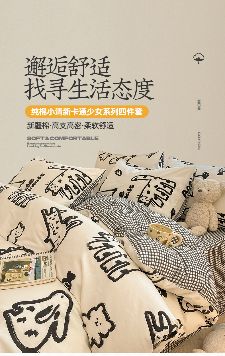 当前位置: 91家纺网 > 商品网购 > 床品套件 > 四件套 > 全棉普通四件套 > 桃子家居 2025新款纯棉小清新13372卡通可爱少女系列四件套 棉-小涂鸦乐园