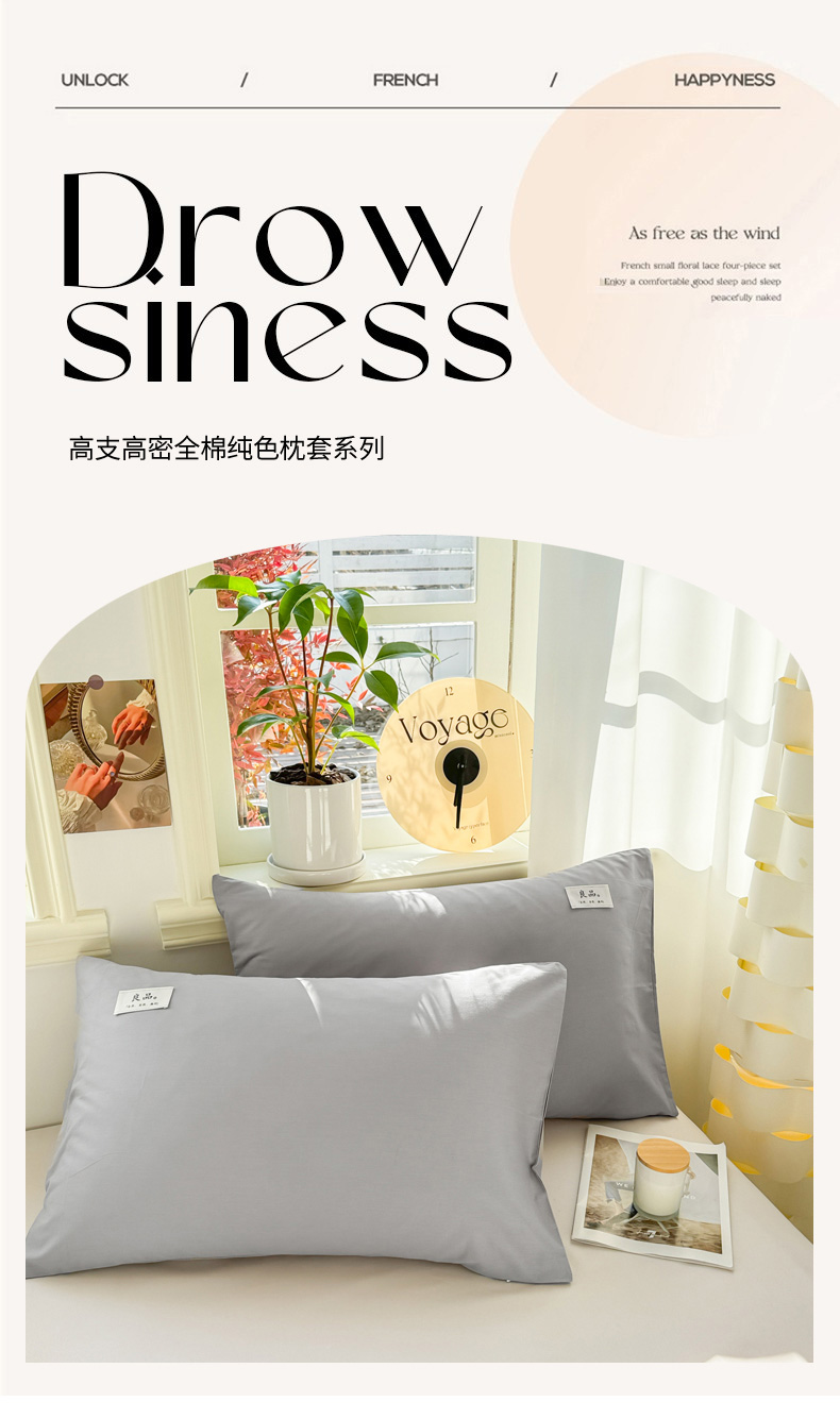 商品名称:眠博士 2025新款全棉40支纯色单枕套 40支枕套-银灰