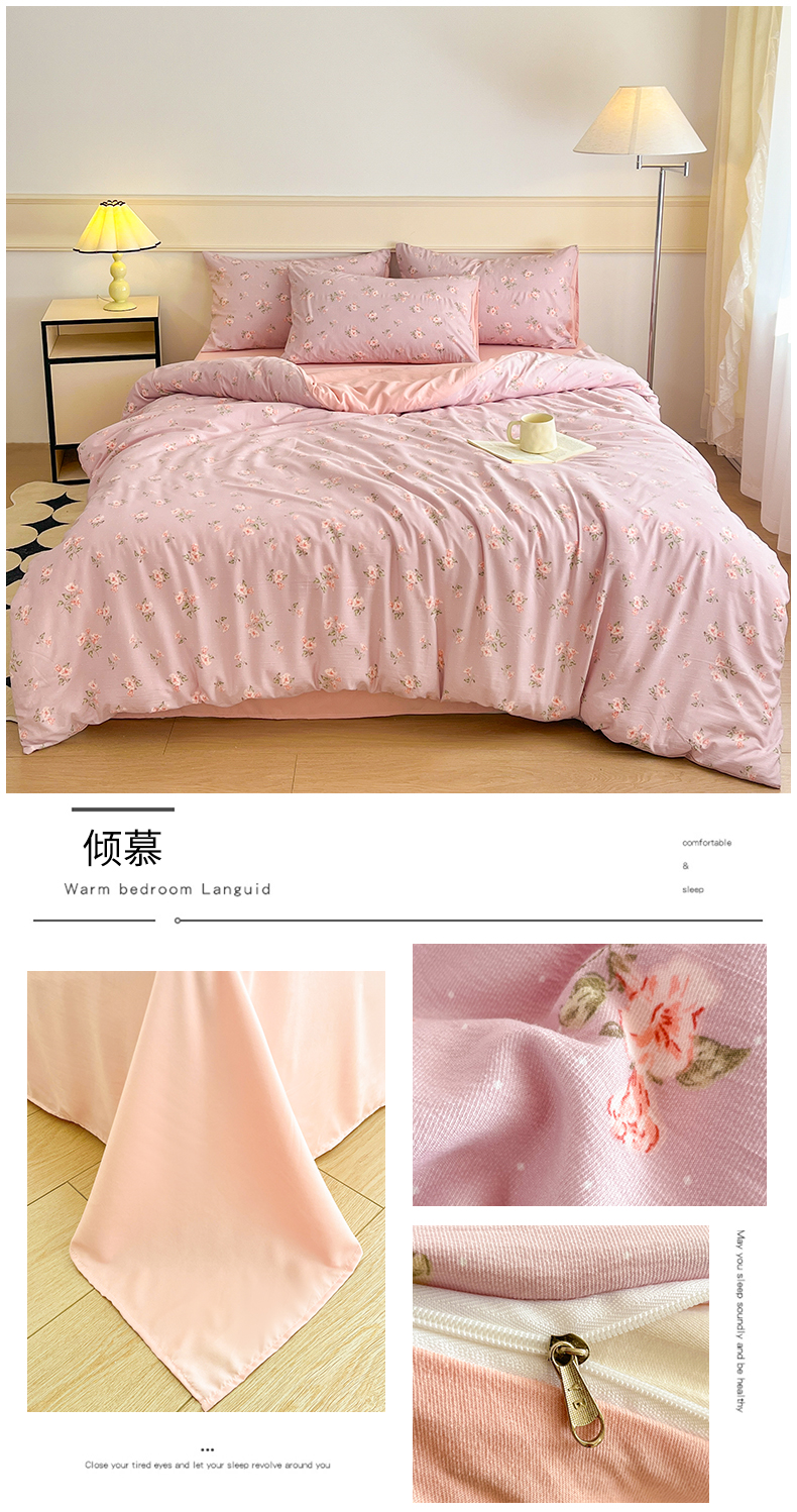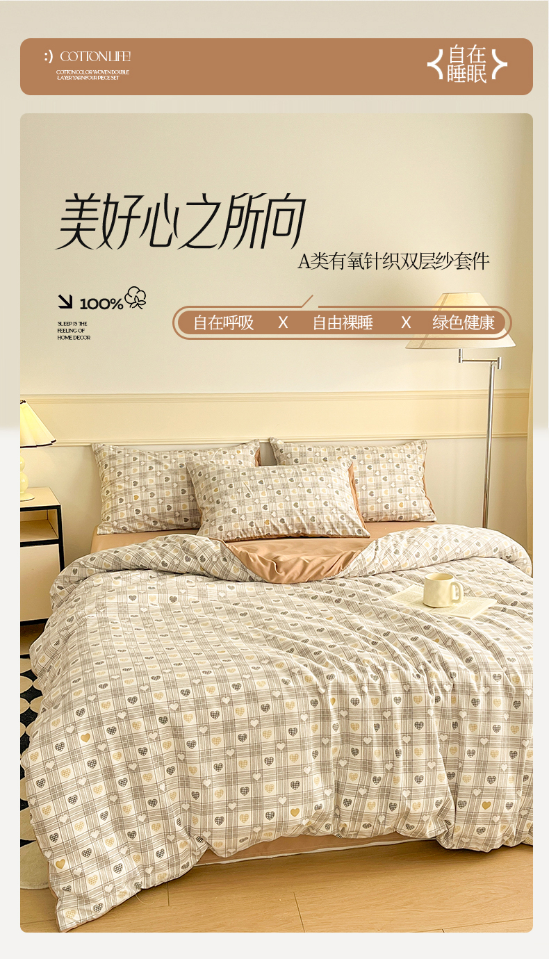 商品名称:(总)悦织湾家纺 2025新款A类针织双层纱小清新印花四件套学生宿舍轻奢时尚三件套床上用品四件套