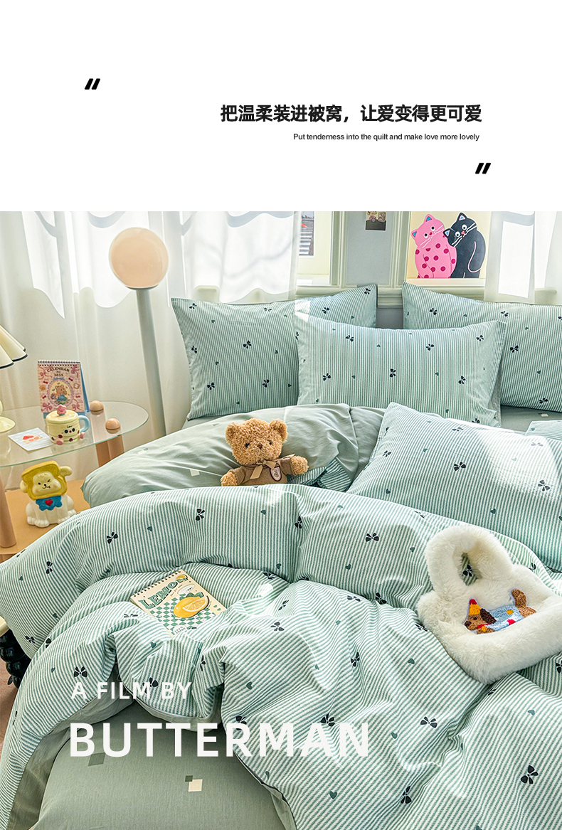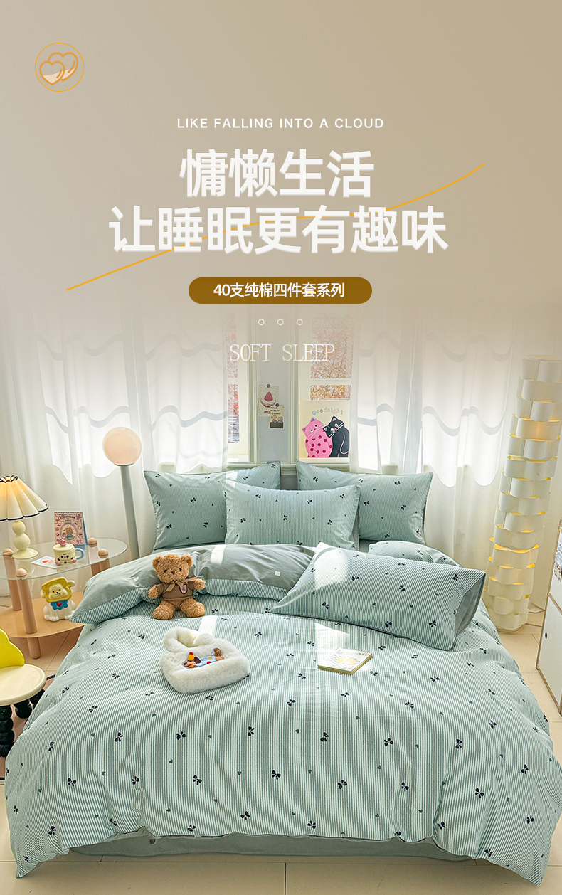 (总)简宜家居 2023新款小清新卡通纯棉全棉斜纹四件套,贩卖美好,蓝彩,蓝色心愿,梦享,奇妙农场,星月童话