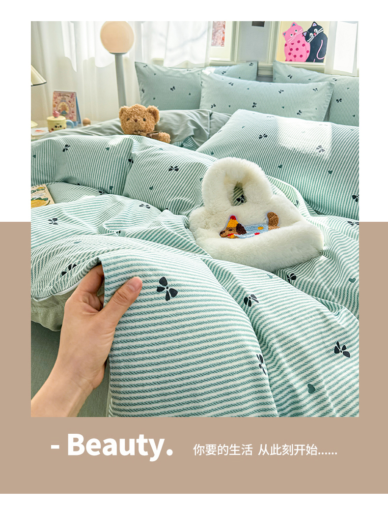 (总)简宜家居(朝初家纺) 2023新款牛奶绒四件套系列,爱觅,百草园,绿茵,萌芽,蜜爱,蜜棠,秋棠,手绘花,旺财,咻咻熊,艺术家,脏脏熊