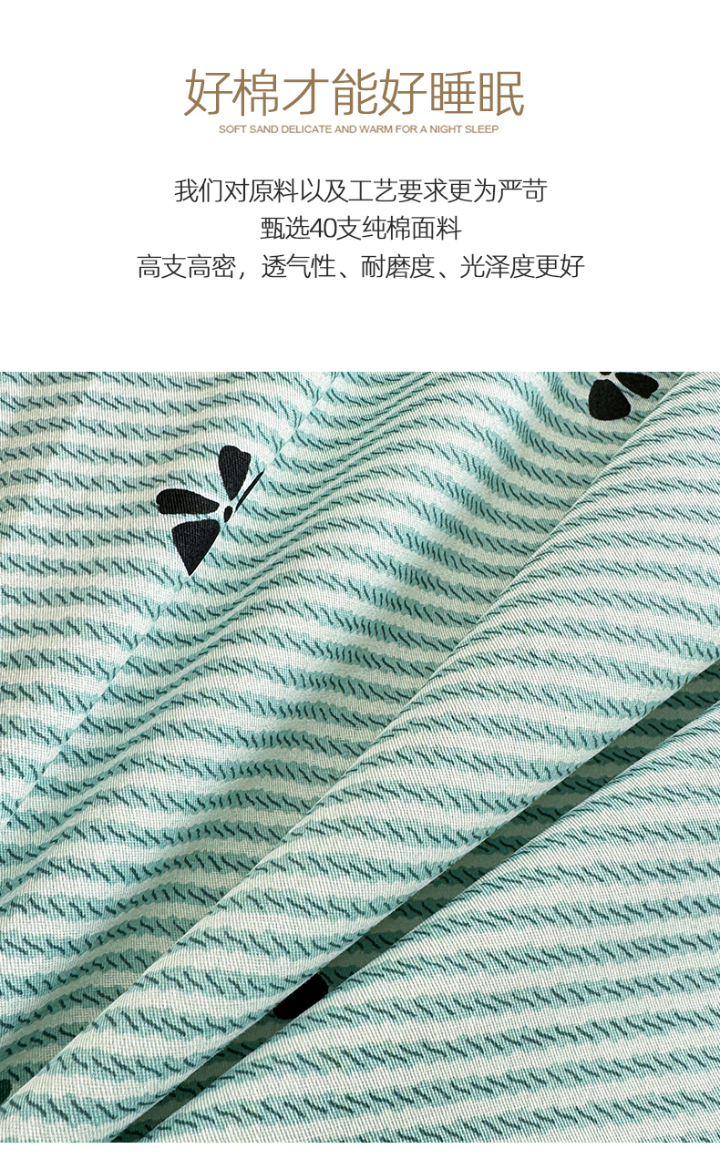 商品名称:简宜家居(朝初家纺) 2025新款40支13070纯棉四件套 蓝条纹蝴蝶结