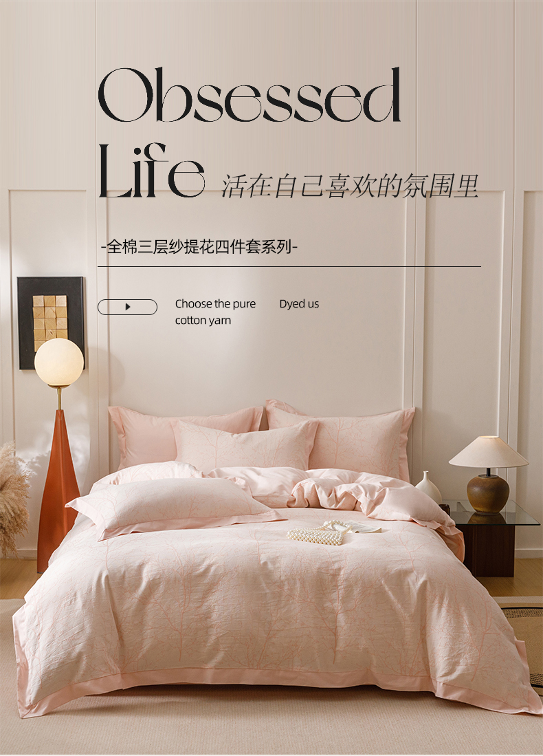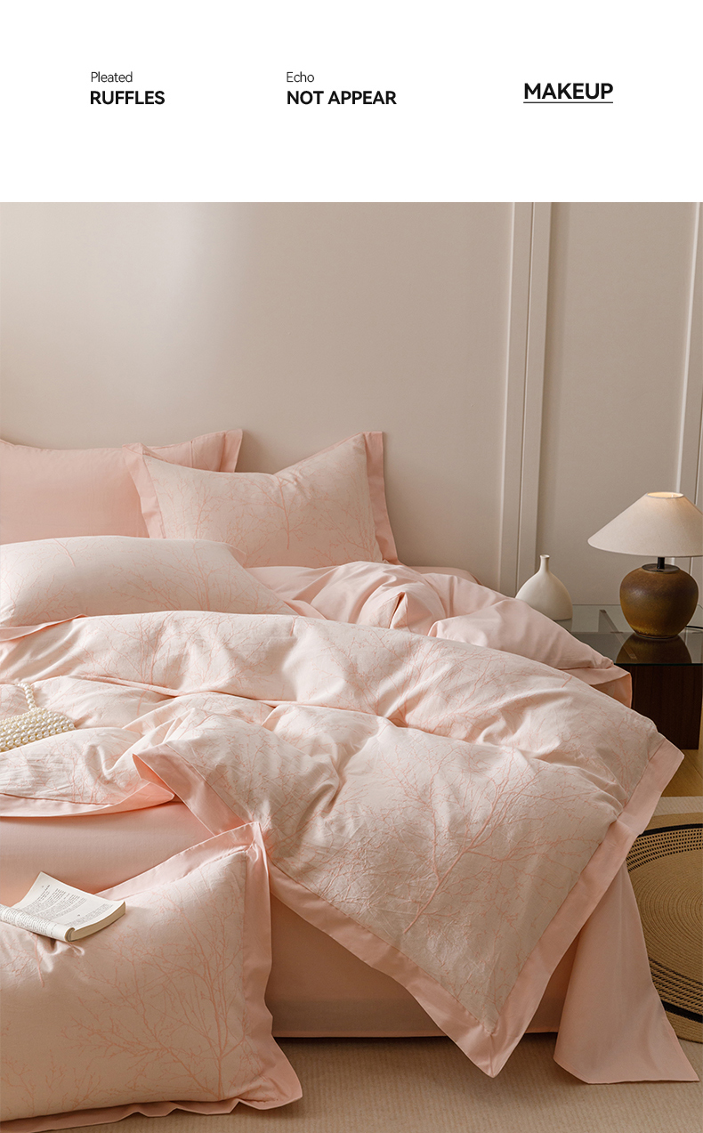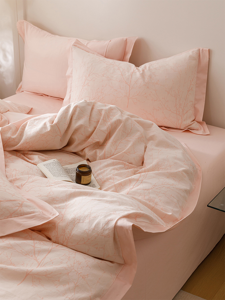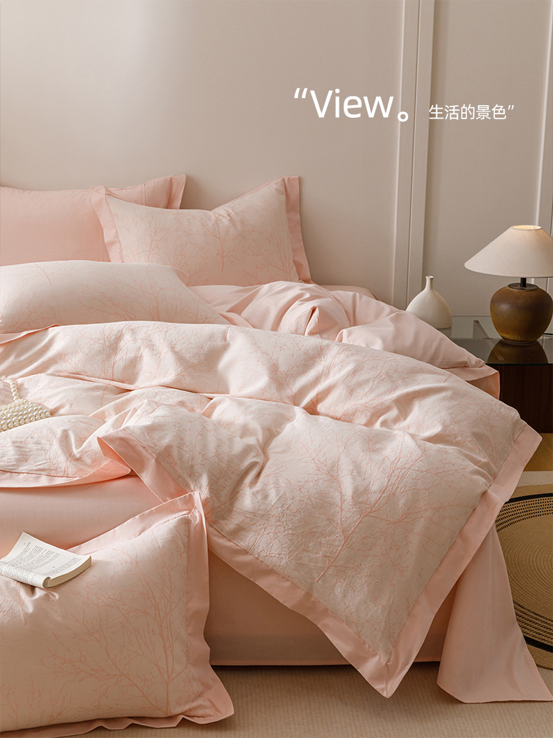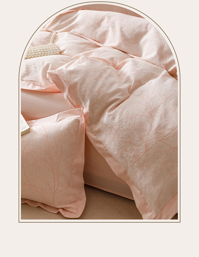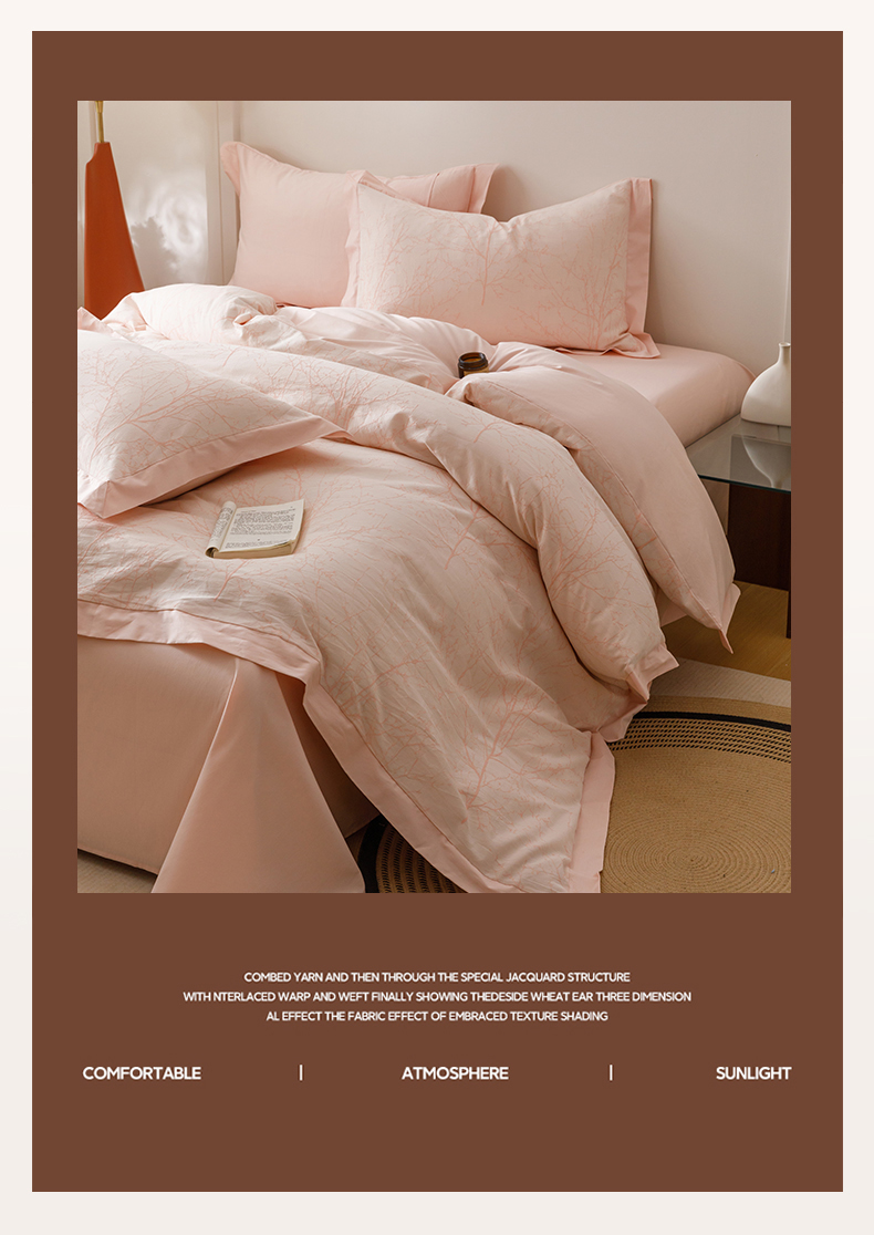 简宜家居(朝初家纺) 2025新款全棉宽边三层纱提花四件套 枝桠-玉粉