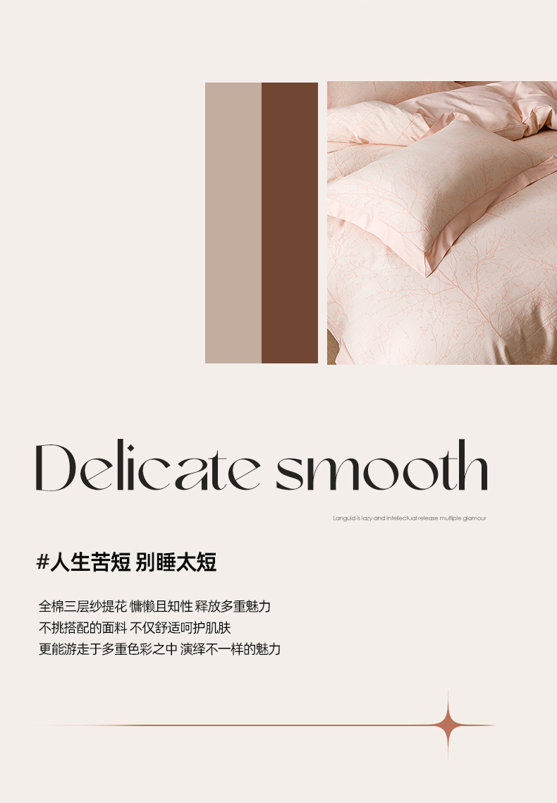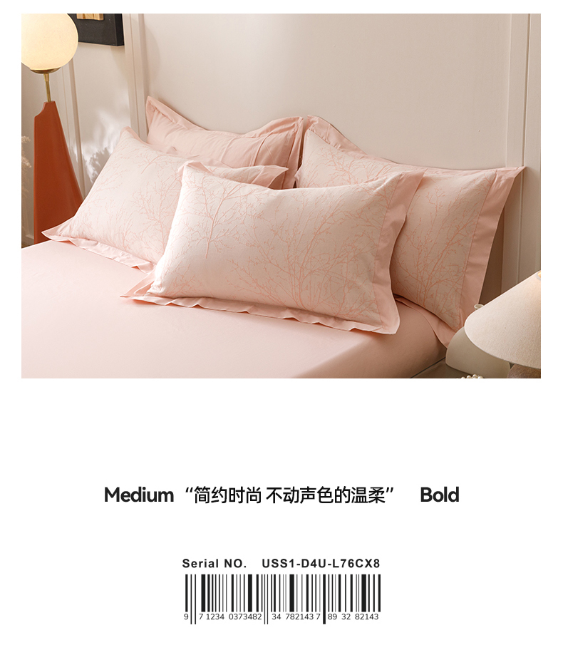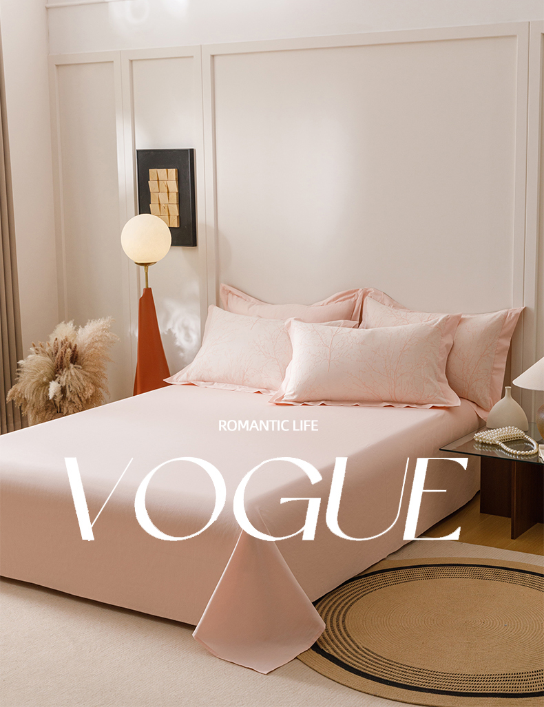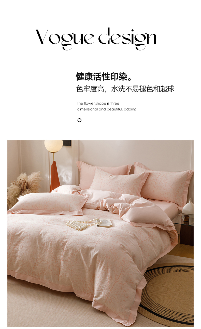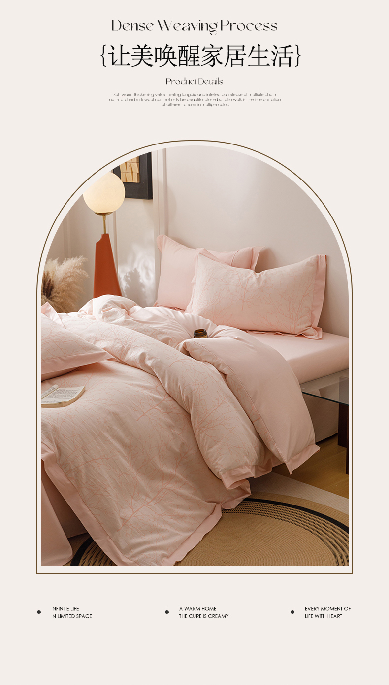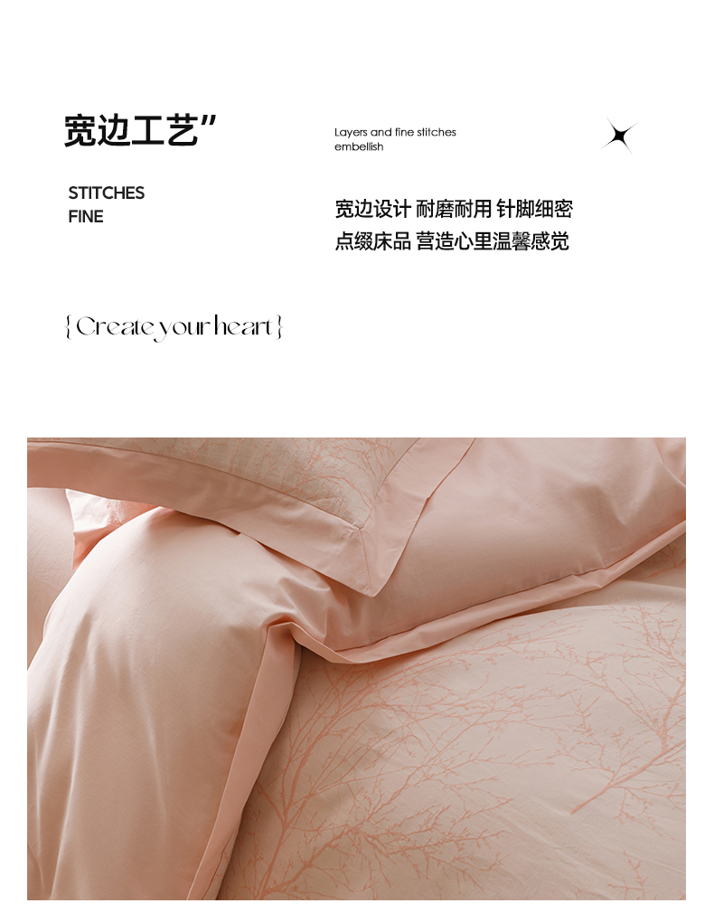 简宜家居(朝初家纺) 2025新款全棉宽边三层纱提花四件套 枝桠-玉粉