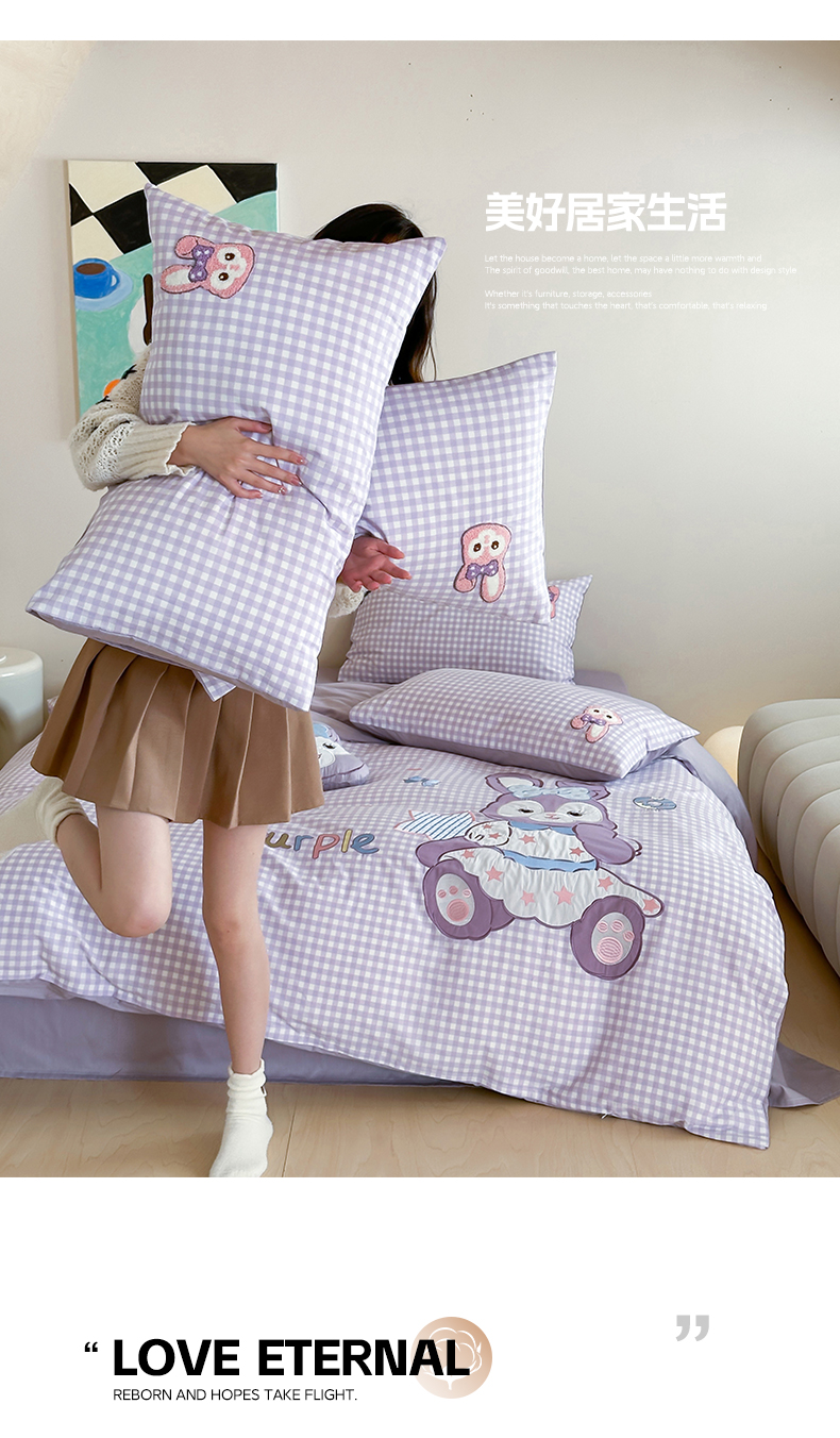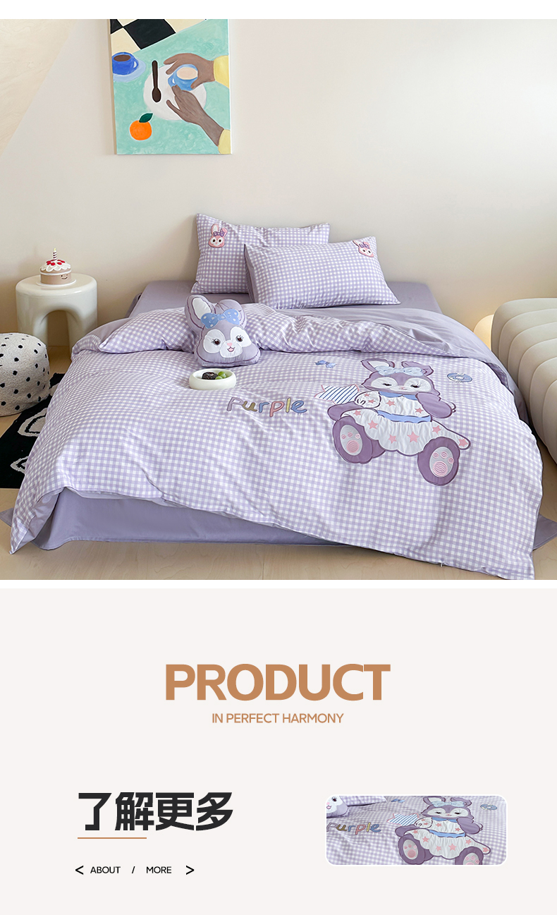 (总)卡巴伦家纺 2025新款全棉皱皱纱大版卡通数码印花款四件套一,洛可可兔-粉,班尼的花园-粉,班尼的花园-黄,漂亮的领结-绿,漂亮的领结-米白,熊猫噗噗-绿,樱桃真甜-奶白