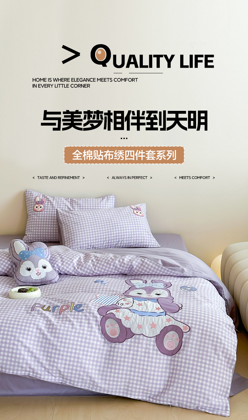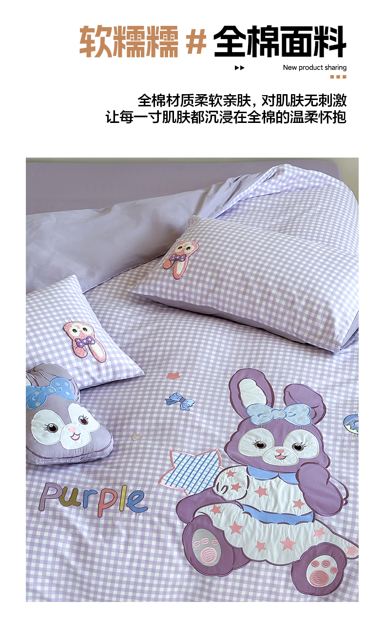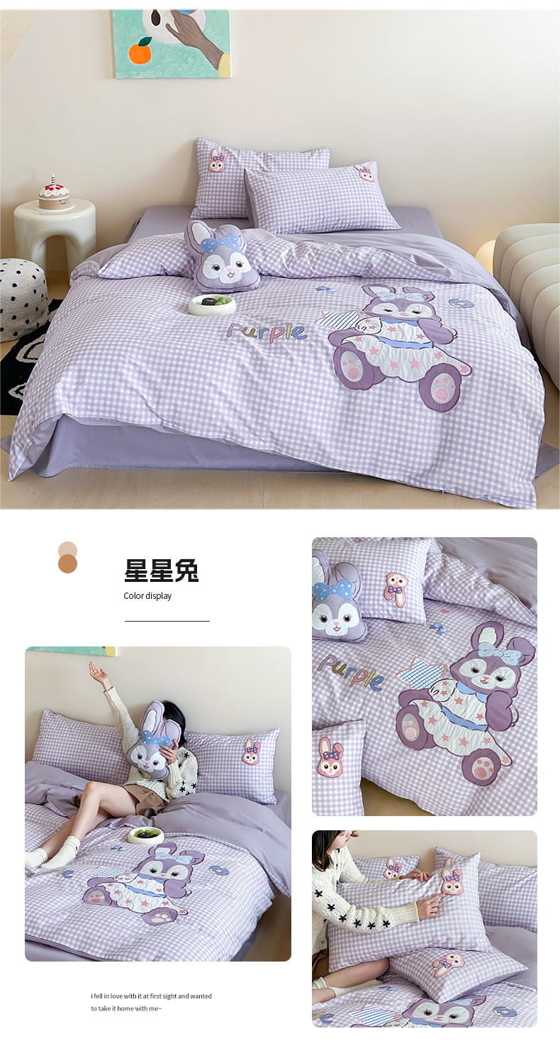 卡巴伦家纺 2025新款全棉卡通贴布绣四件套【全网控价(折后券后)不低于标准248元】 星星兔