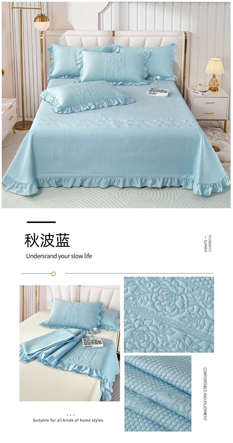 商品名称:OL家纺2025新款天丝床盖三件套系列-牡丹 秋波蓝