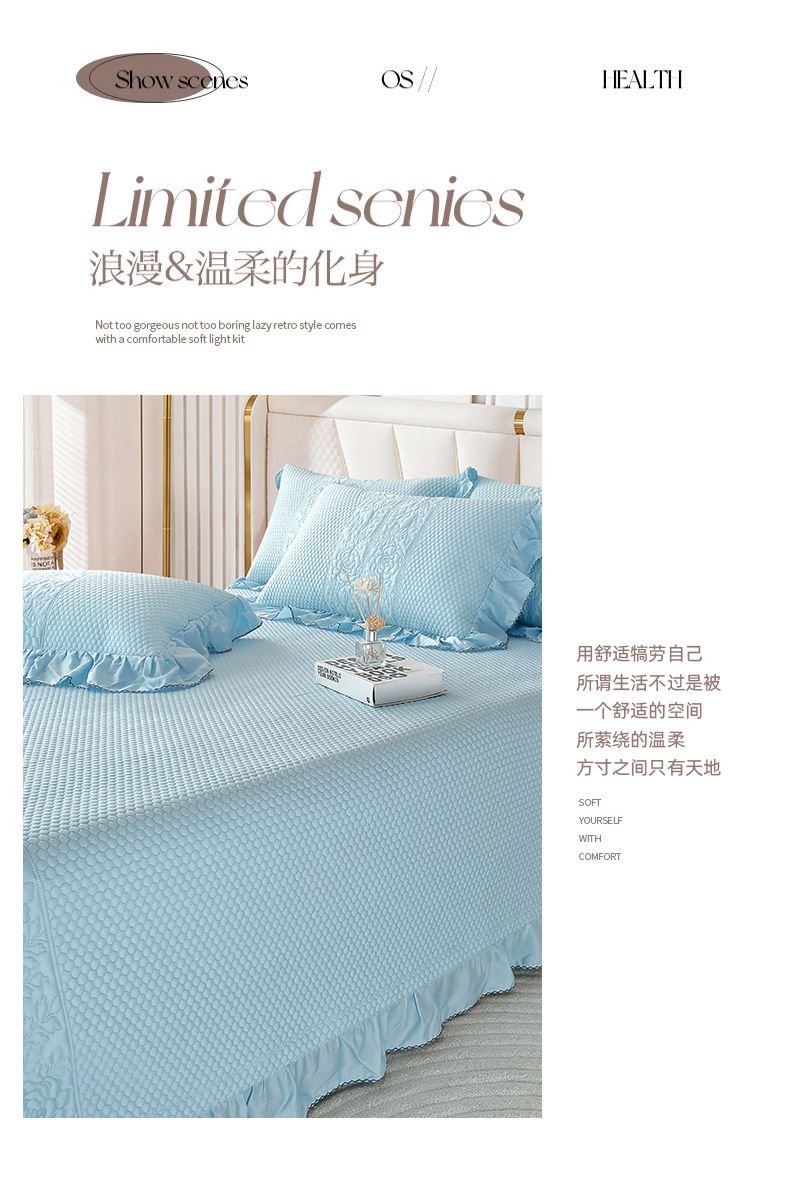 (总)ol 2022新款全棉纯色居家被套床盖枕套夹棉绗绣四件套,宾利蓝,高雅灰,海棠绿,梦幻紫,蜜糖桔,奶油黄,浅豆沙,浅米金,樱花粉