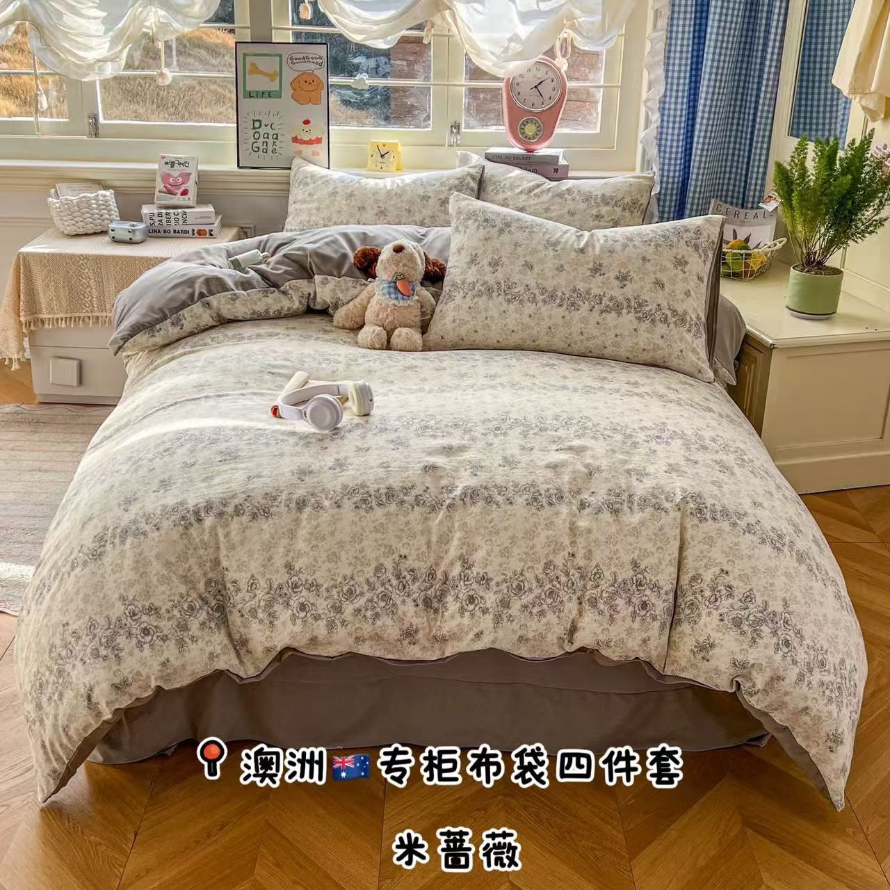 暖伊家居 2026新款澳洲原单仿棉布袋四件套 米蔷薇