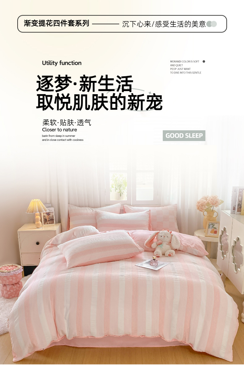 (总)二八年华 2024新款奶油提花泡泡纱四件套,奶油-白粉,奶油-白蓝,奶油-白绿,奶油-白紫,奶油-粉玉,奶油-绿黄,奶油-奶咖