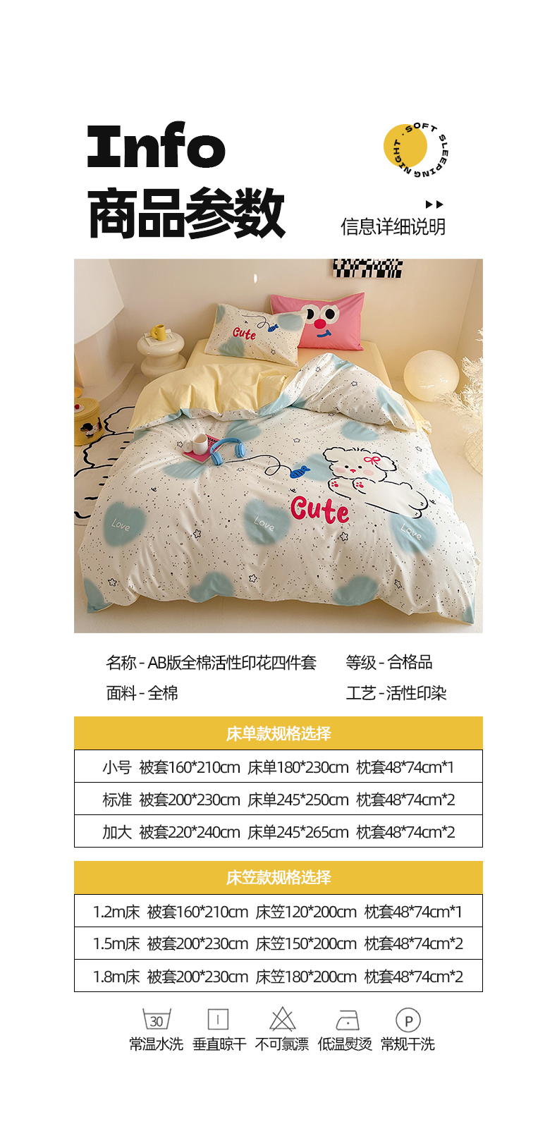 当前位置: 91家纺网 > 商品网购 > 床品套件 > 四件套 > 全棉普通四件套 > 卧趣家纺 2025新款全棉大版卡通数码印花纯棉四件套 小可爱