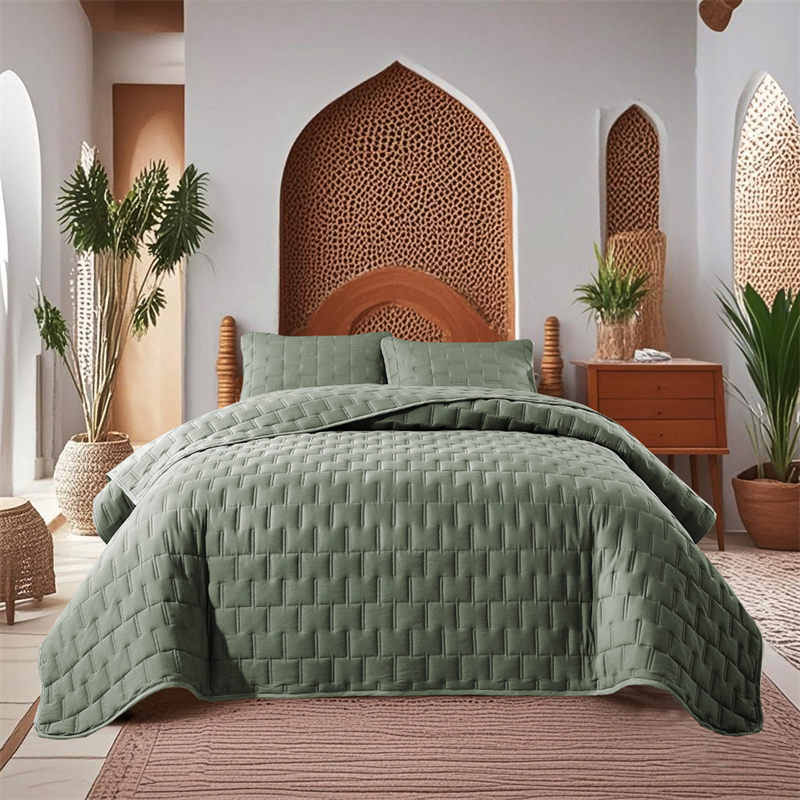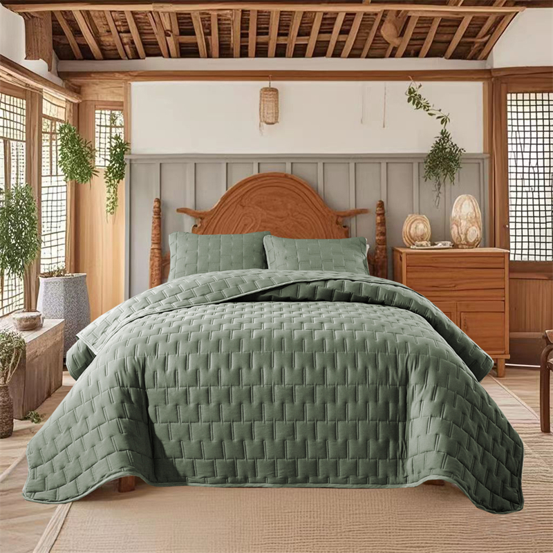 商品名称:温宁2025新款 跨境外贸专供山字格床盖 绿色