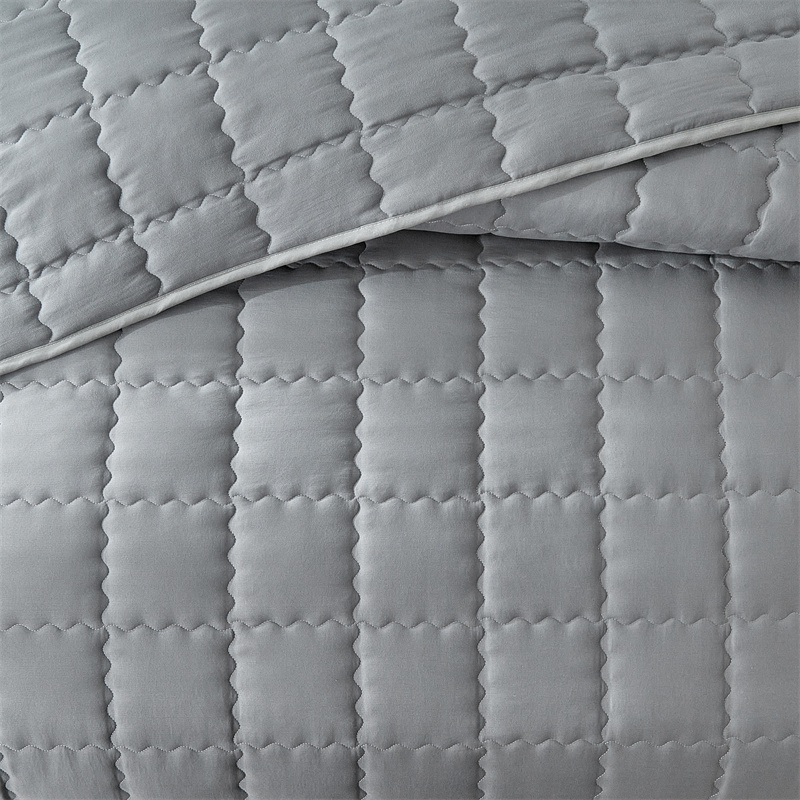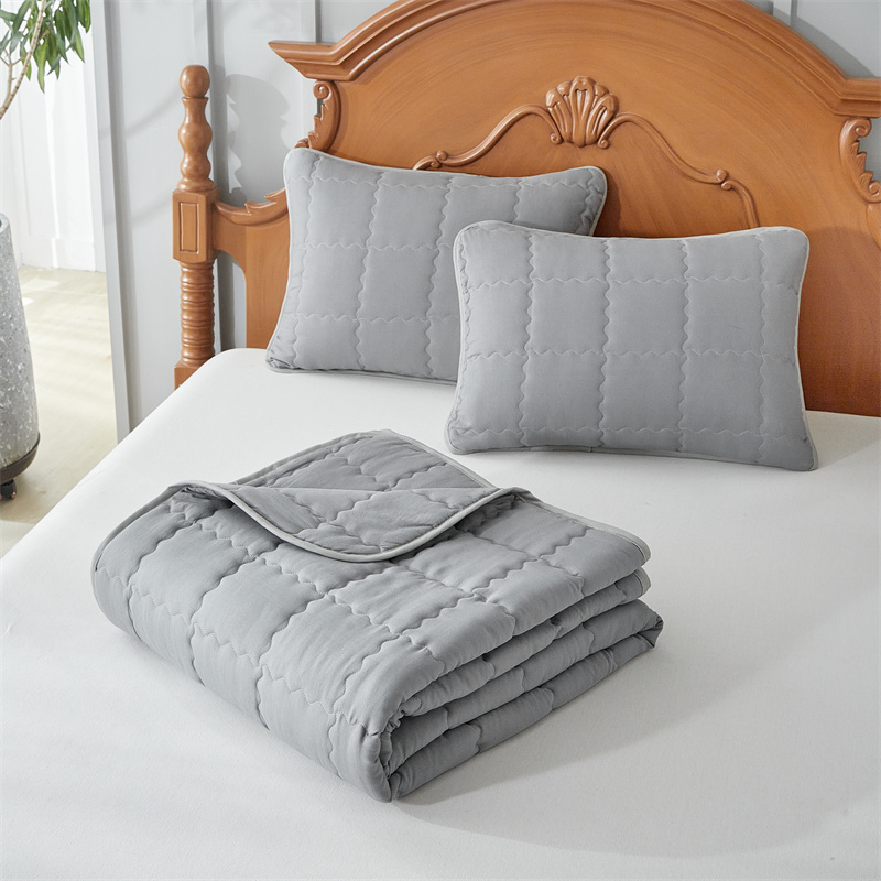 (总)2025新款田字格床盖三件套 国外薄被,田字格-灰色,田字格-绿色,田字格-米色