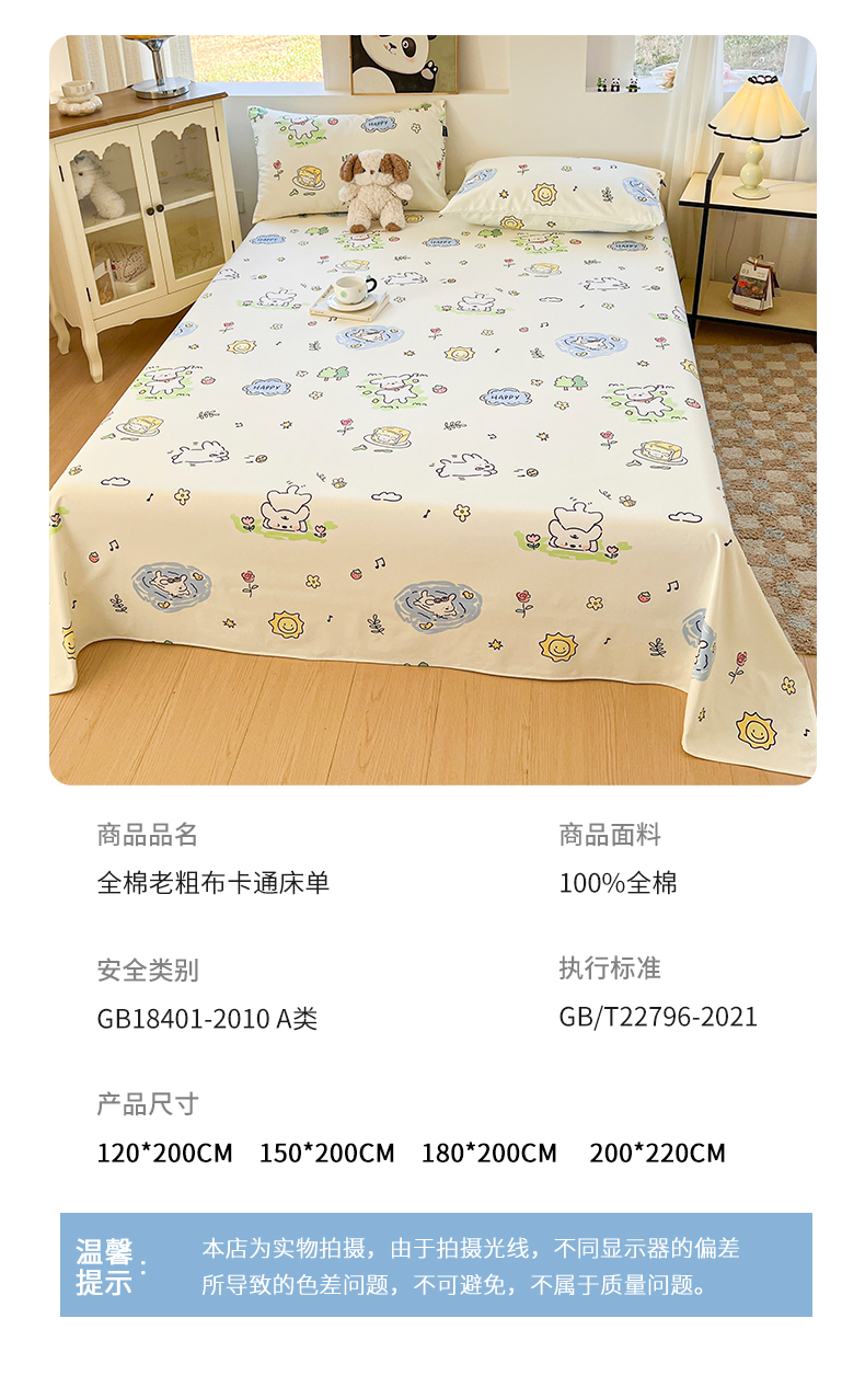 商品名称:鑫钰 2025新款纯棉老粗布单床单-卡通系列 米多