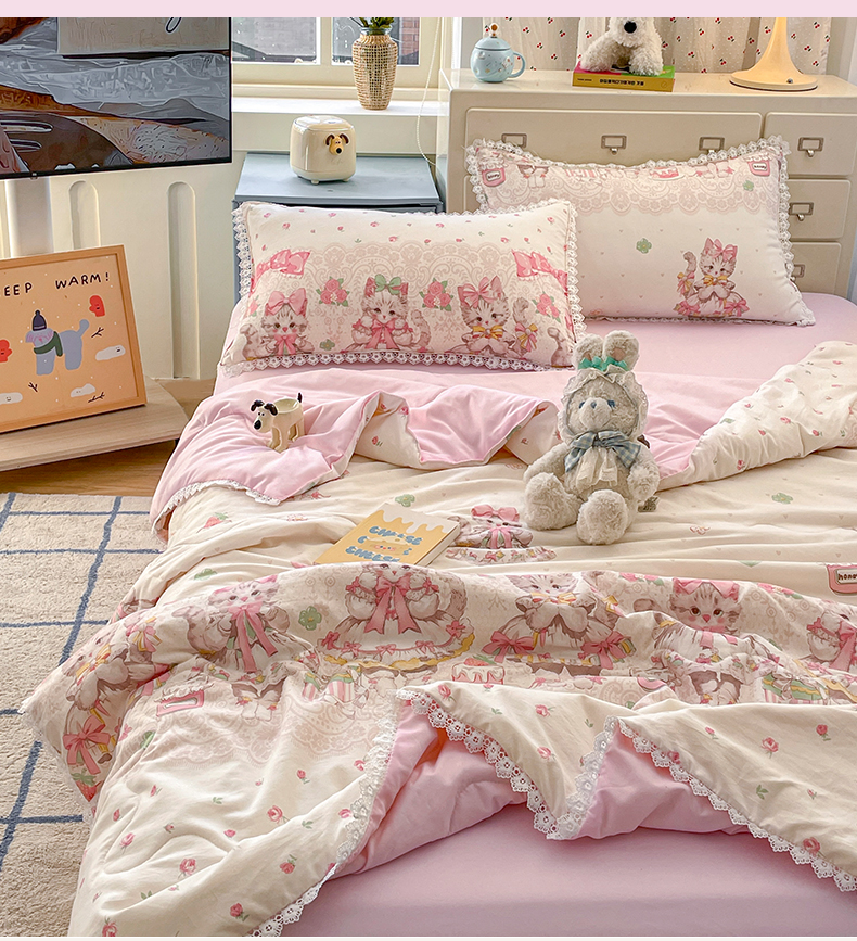商品名称:老帅的工厂店 2025新款A类印花洛丽塔夏被(提供买家秀) 蝴蝶结猫