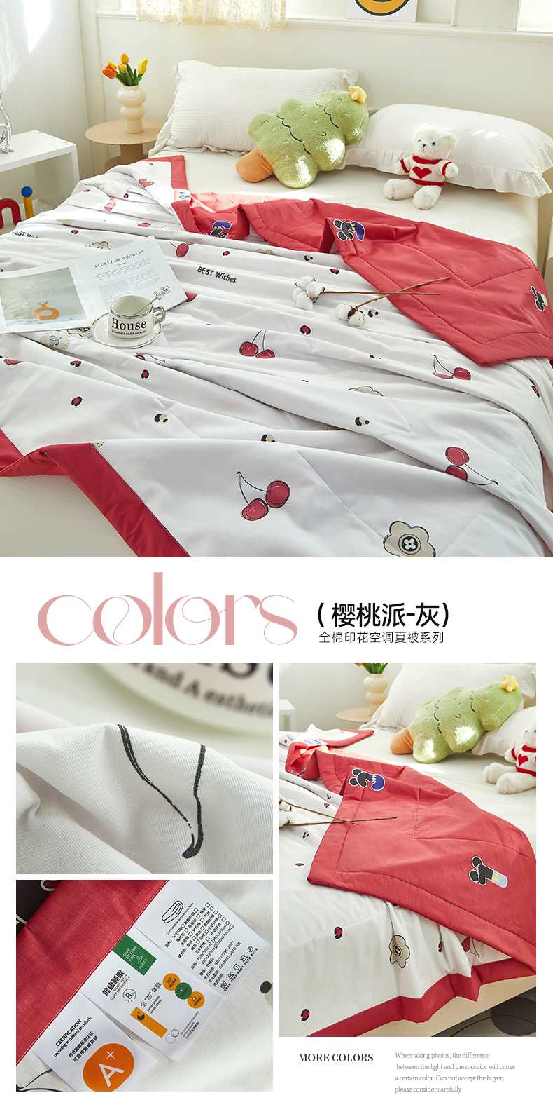 商品名称:美之润2025新款A类全棉印花夏被空调被夏凉被 樱桃派(灰)