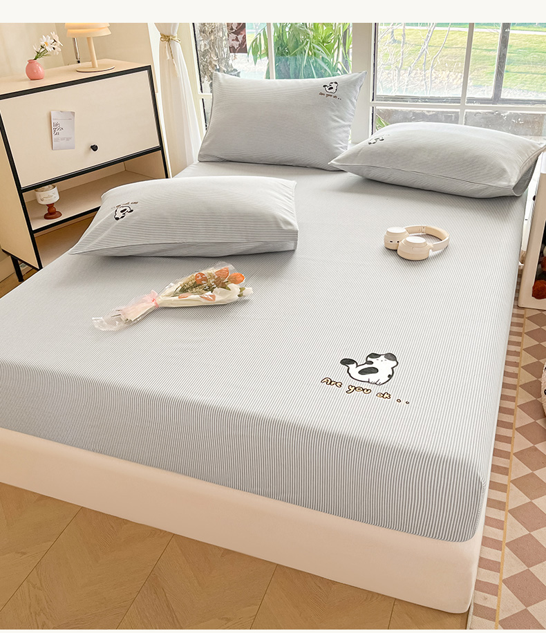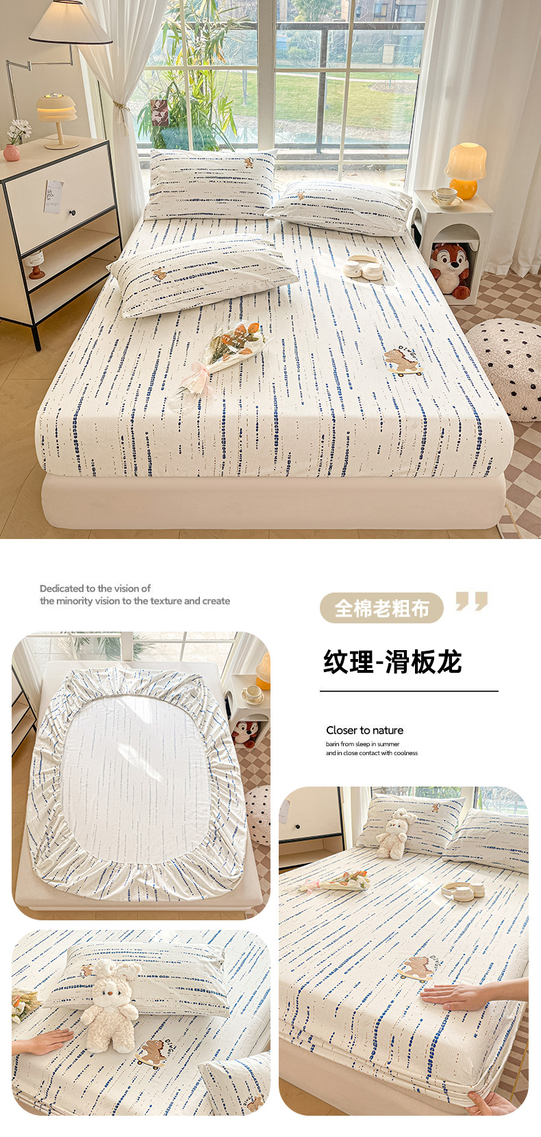• 91家纺网 家纺一手货源 找家纺 博雅 2025新款全棉老粗布烫画床笠系列 心动-小花猫