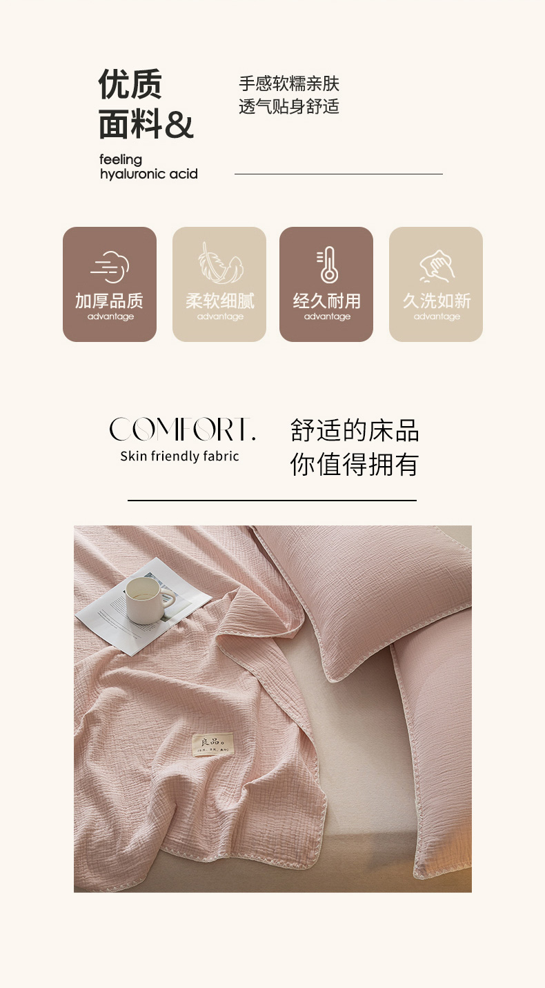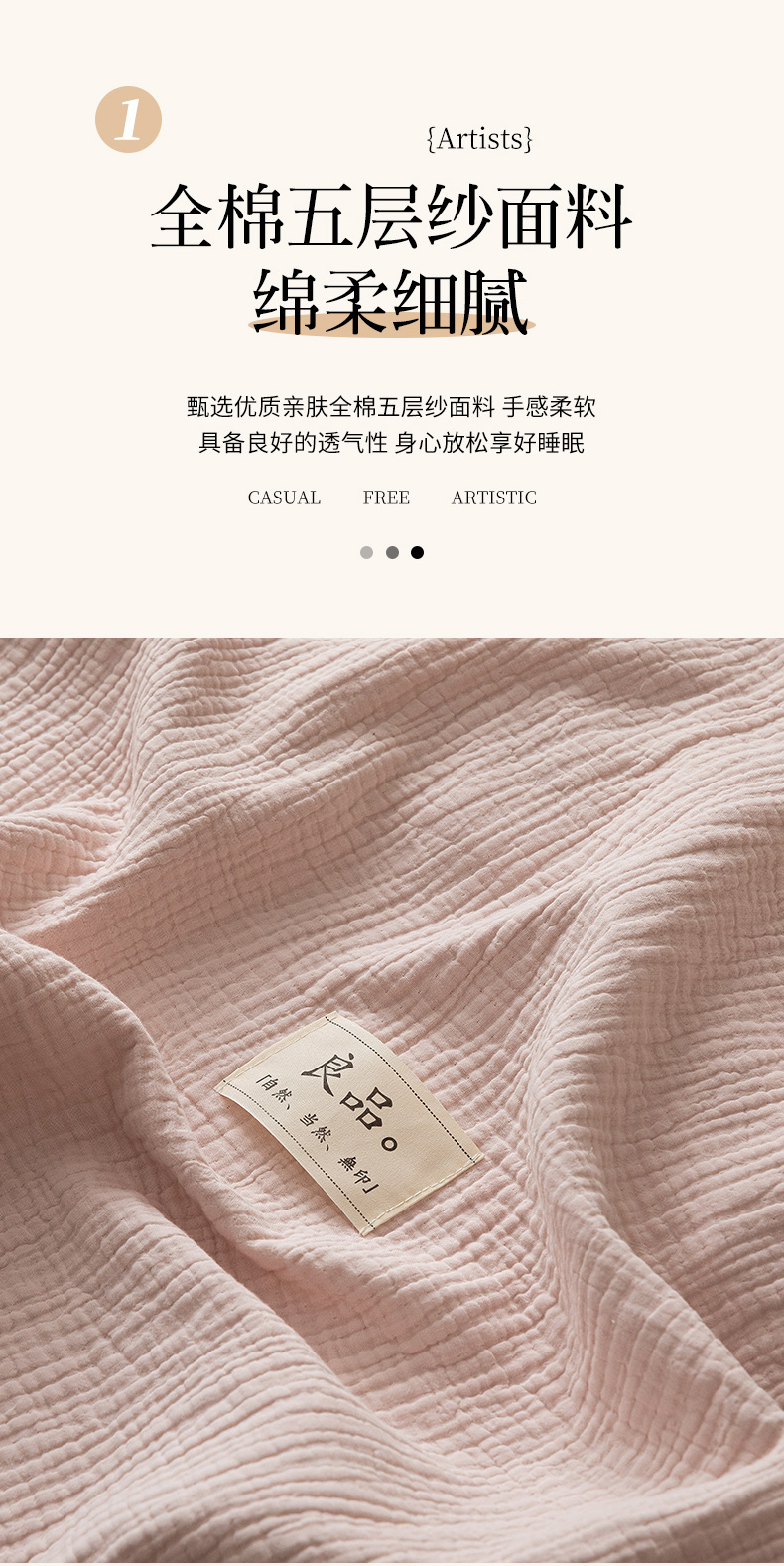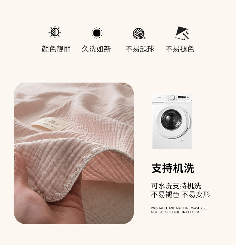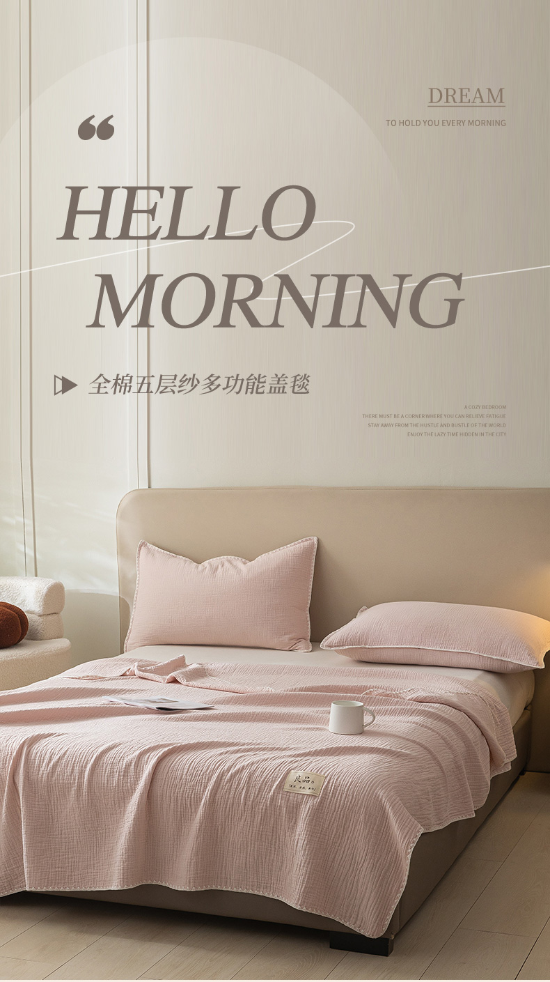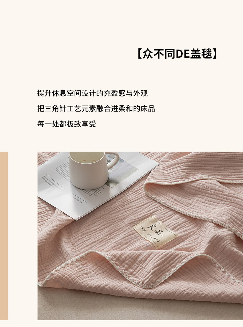 商品名称:博雅 2025新款全棉五层纱多功能盖毯 粉色