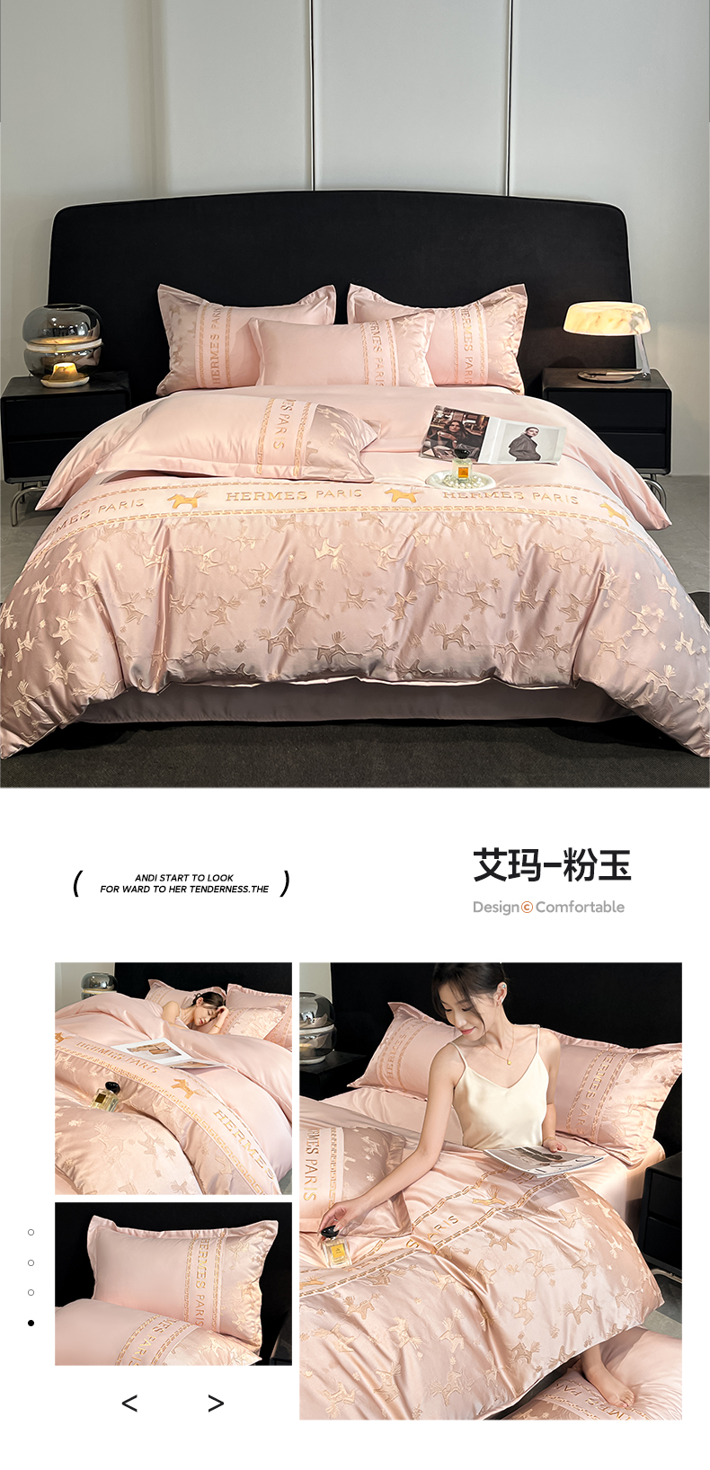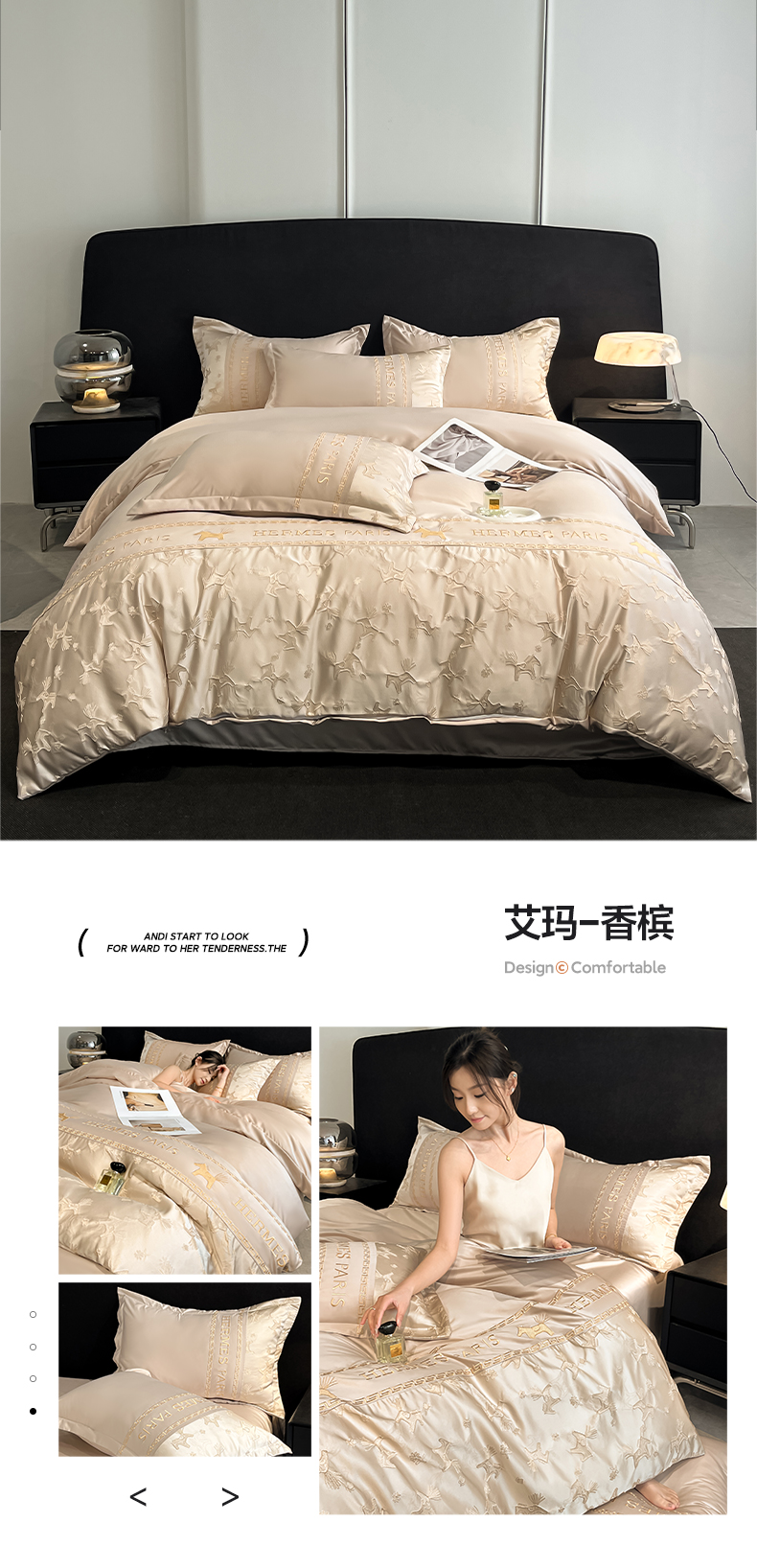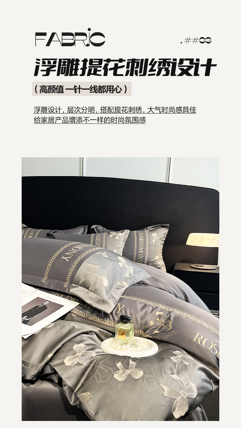 当前位置: 91家纺网 > 商品网购 > 床品套件 > 四件套 > 提花四件套 > (总)宇航家纺 2025新款水洗真丝金丝浮雕提花四件套