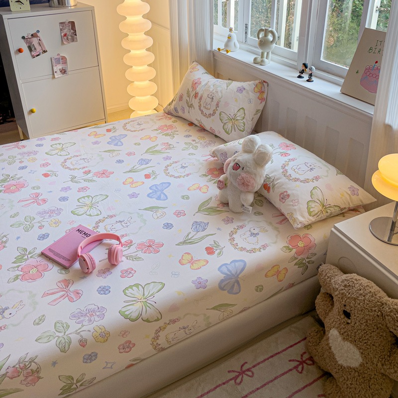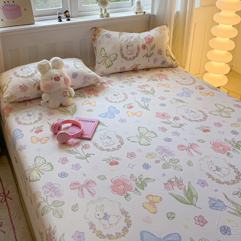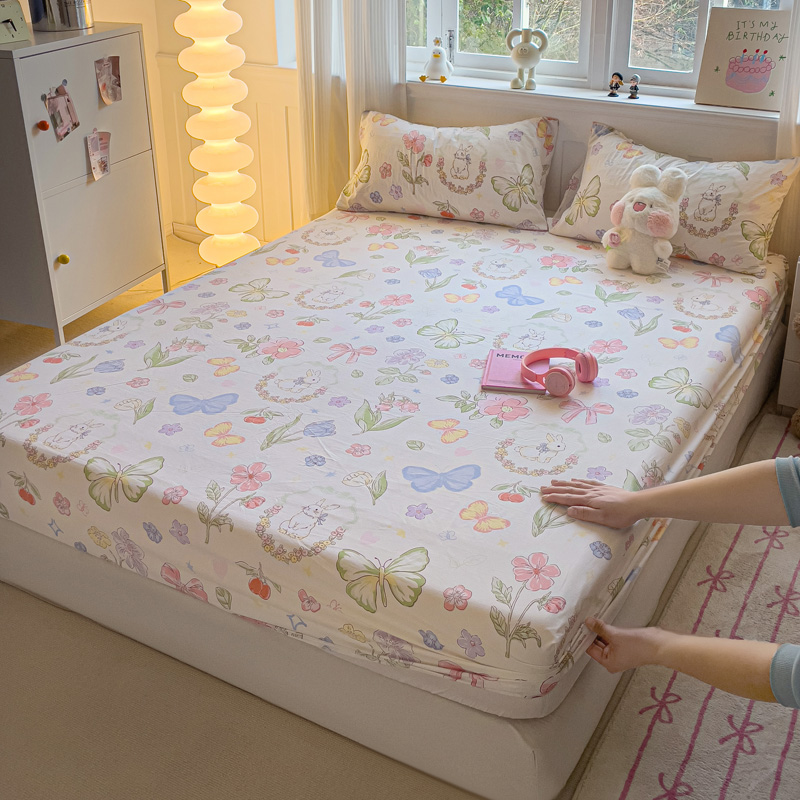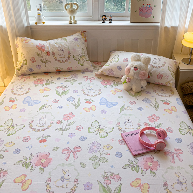 仟人梦2025新款水洗棉印花床笠 莫莉兔