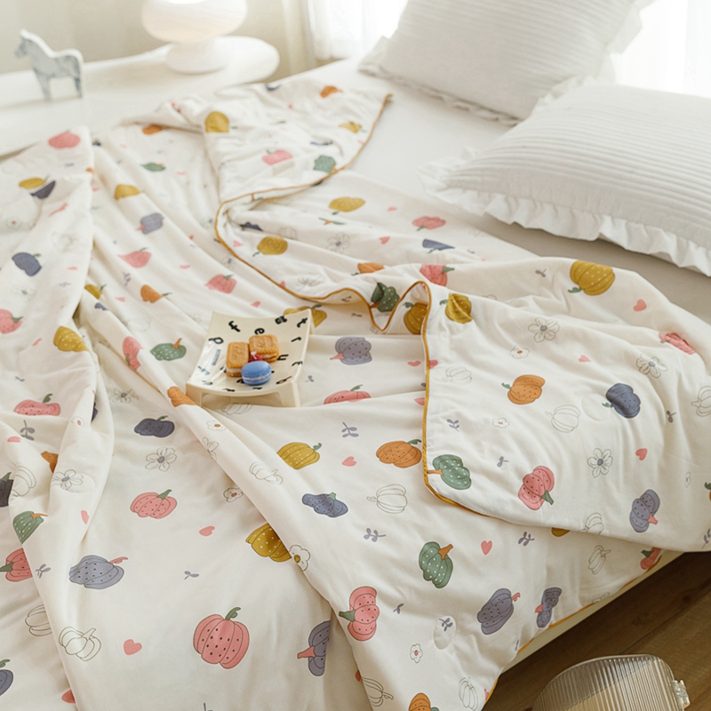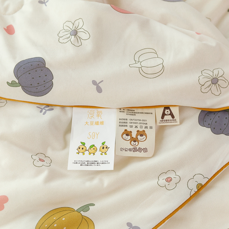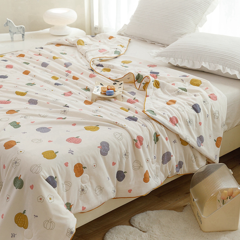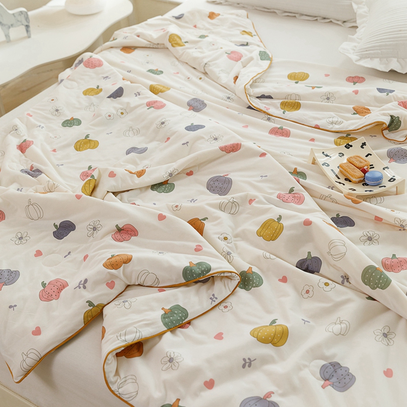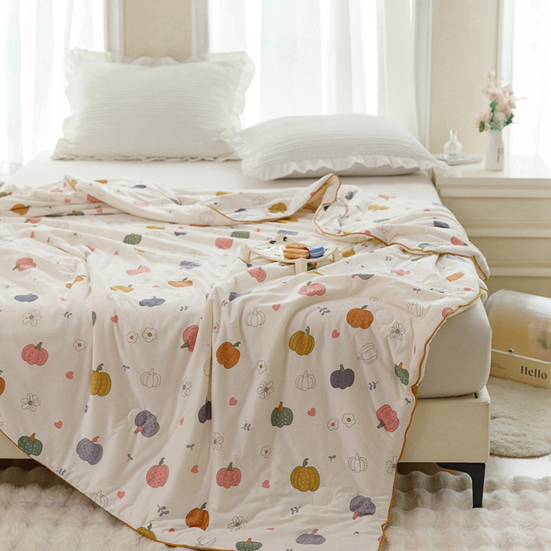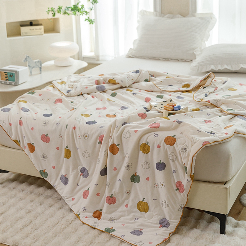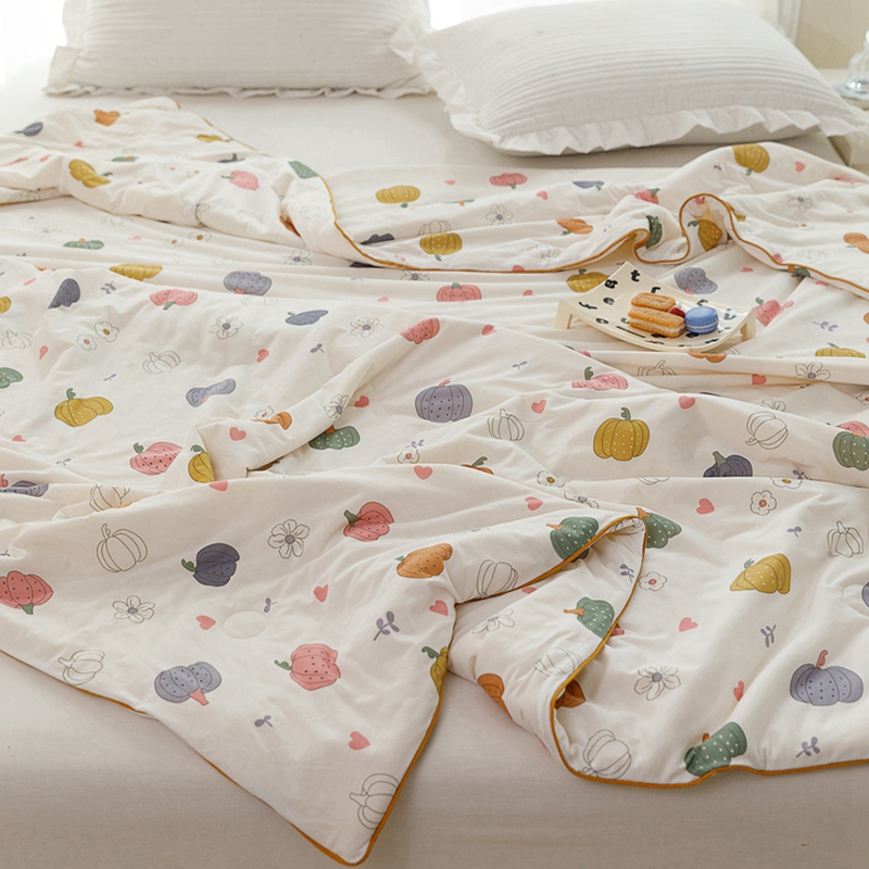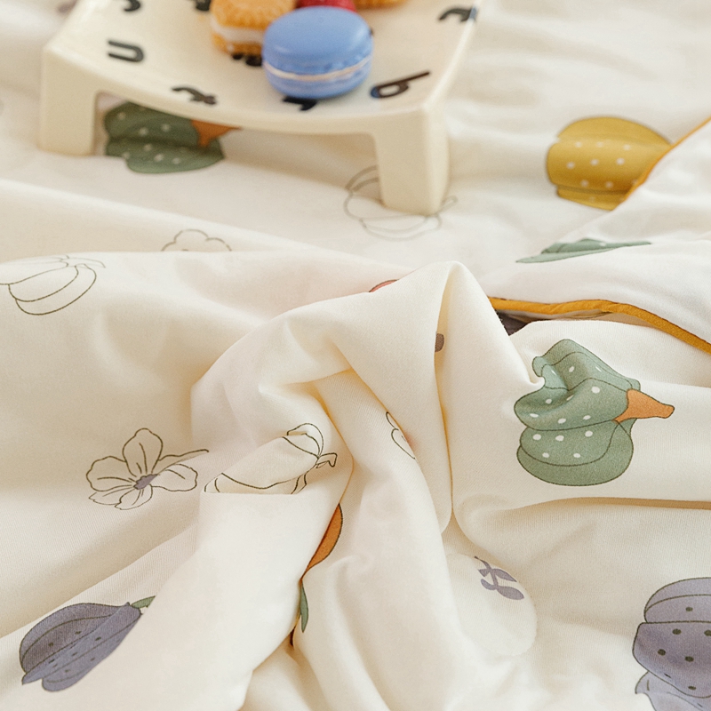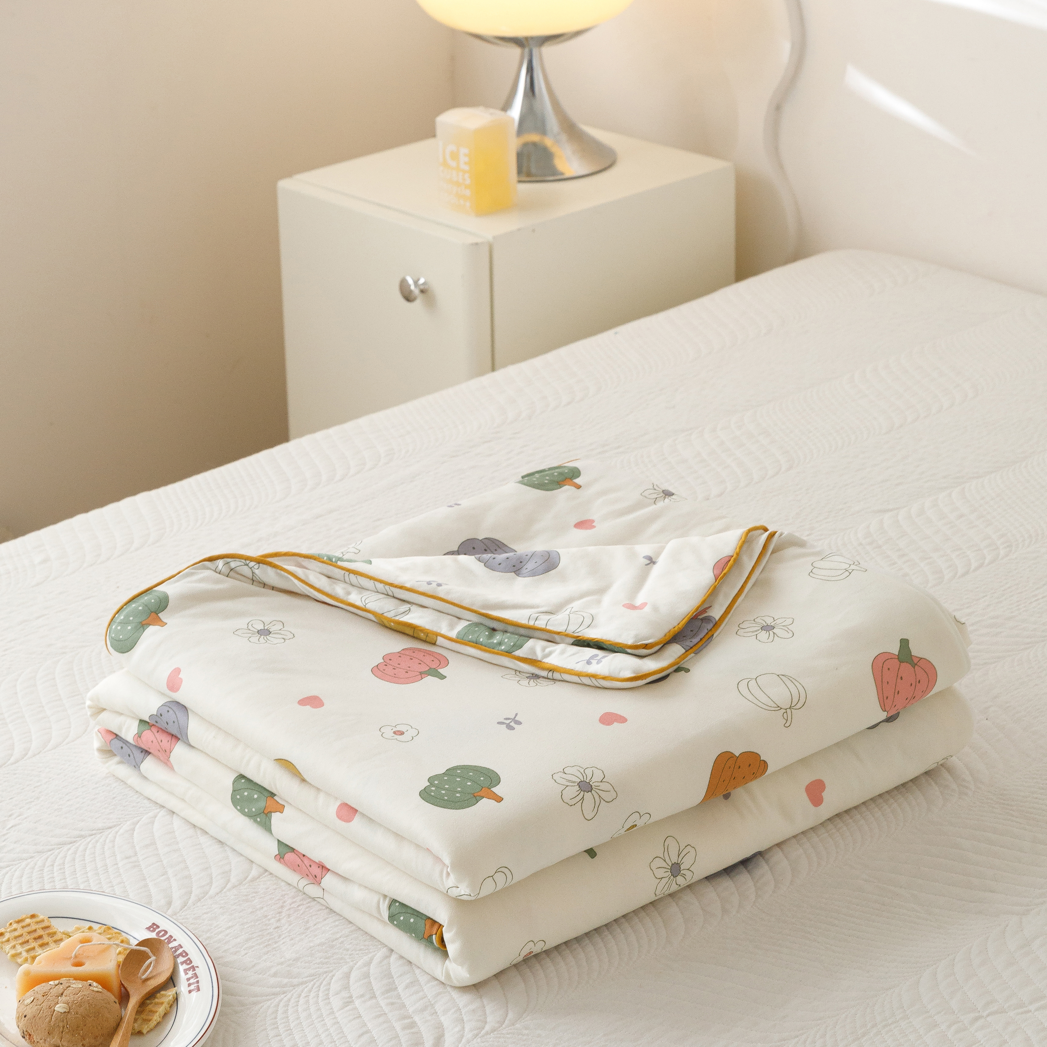 商品名称:优被业 2025新款A类牛奶丝针织棉夏被20%大豆(四周踩棉)软糯夏凉被空调被 贝贝南瓜