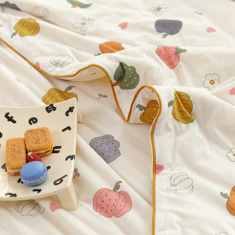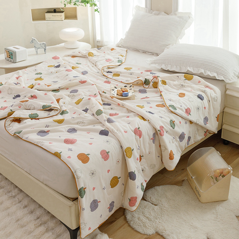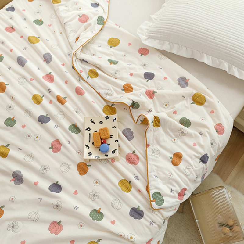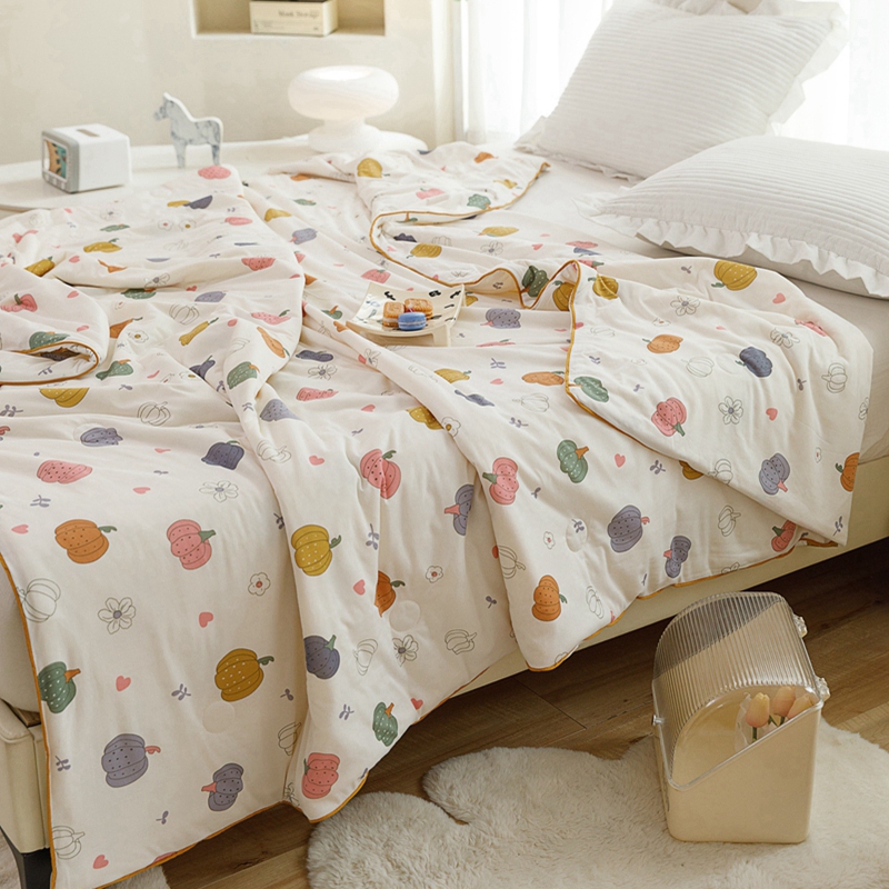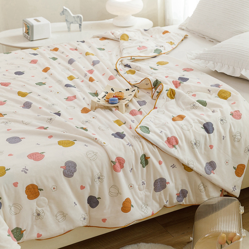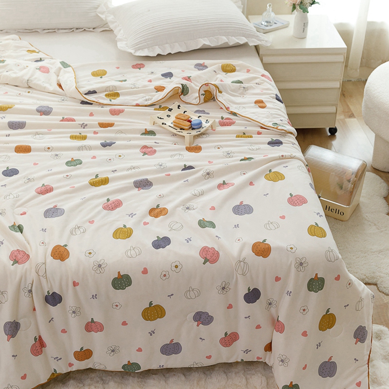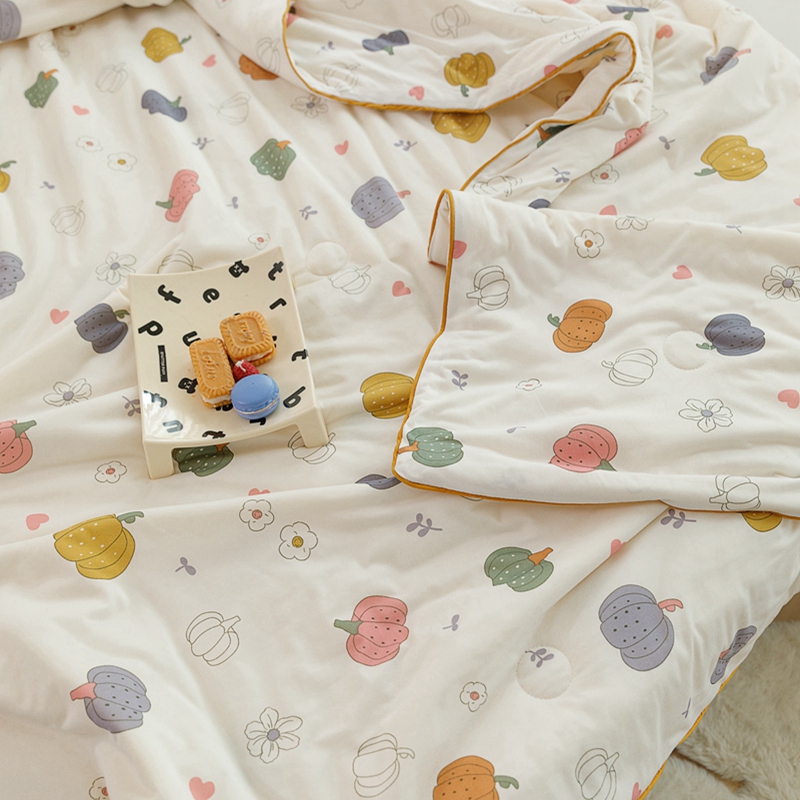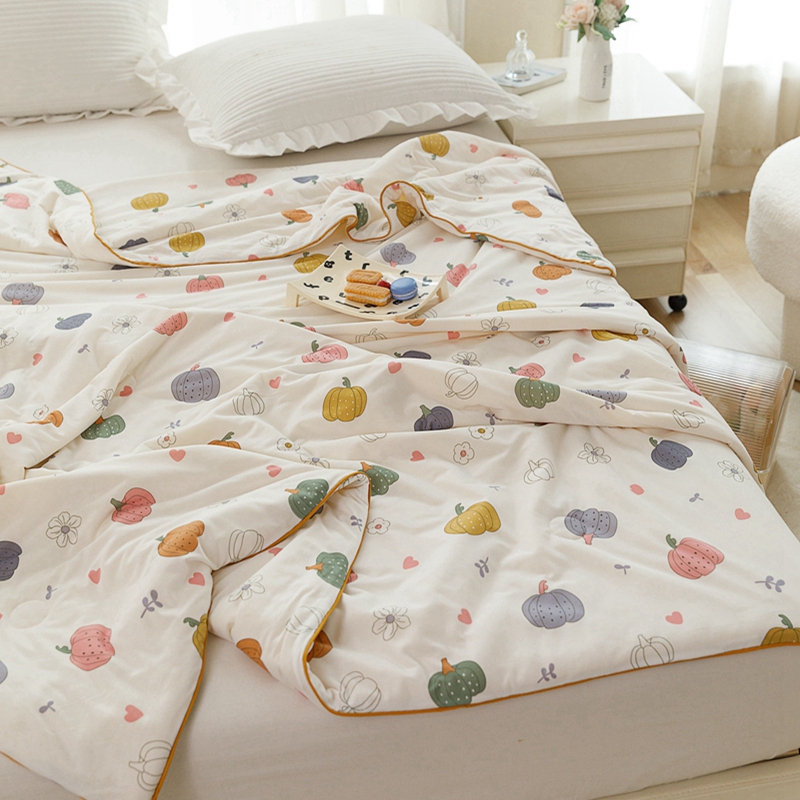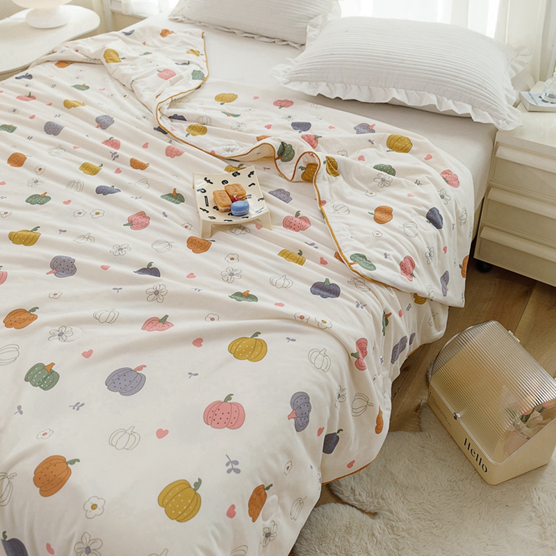 商品名称:优被业 2025新款A类牛奶丝针织棉夏被20%大豆(四周踩棉)软糯夏凉被空调被 贝贝南瓜