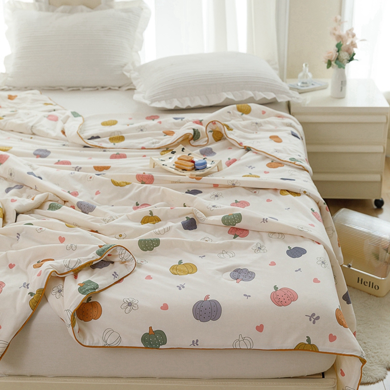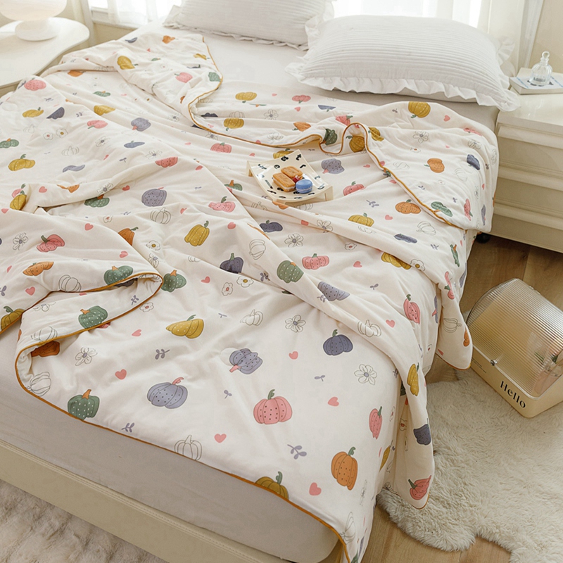 优被业 2025新款A类牛奶丝针织棉夏被20%大豆(四周踩棉)软糯夏凉被空调被 贝贝南瓜