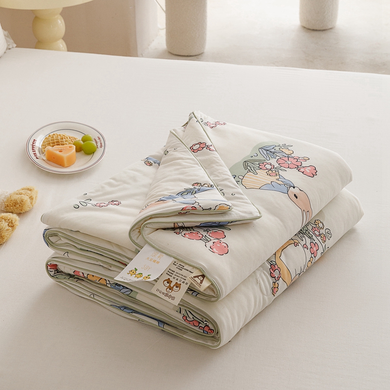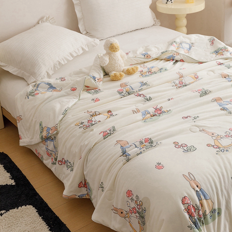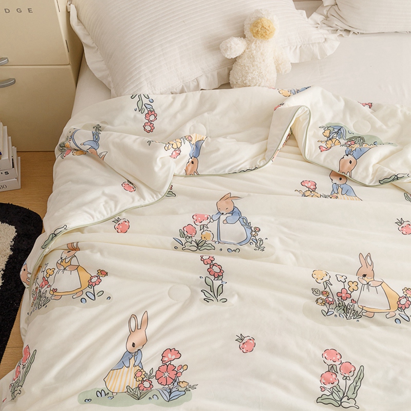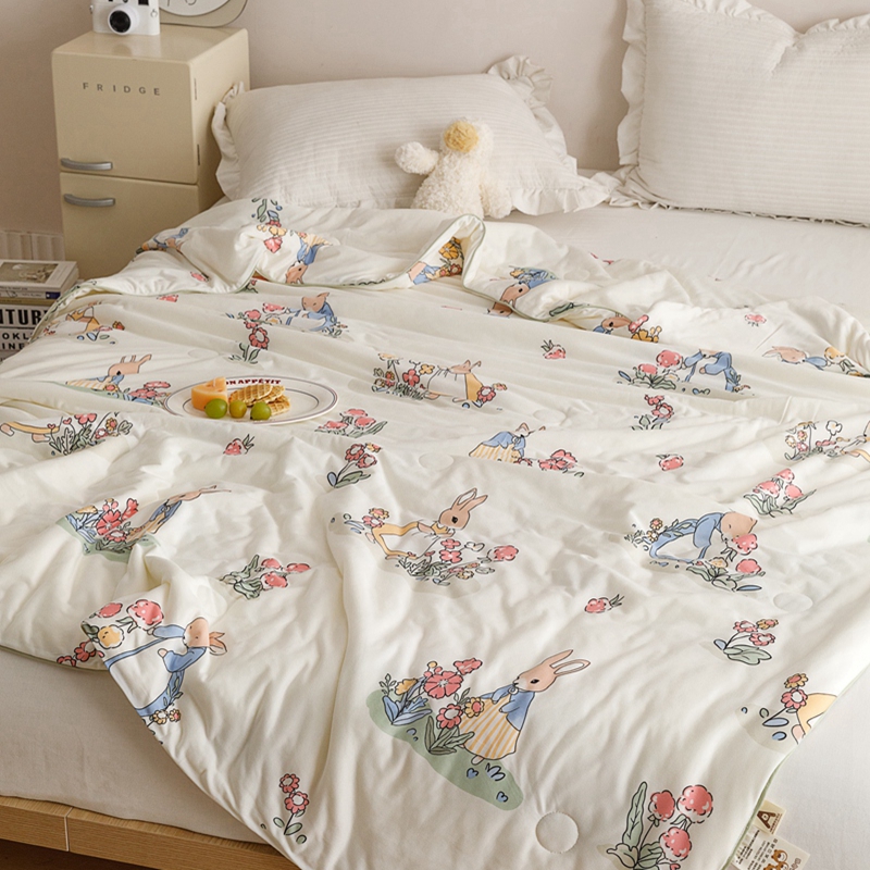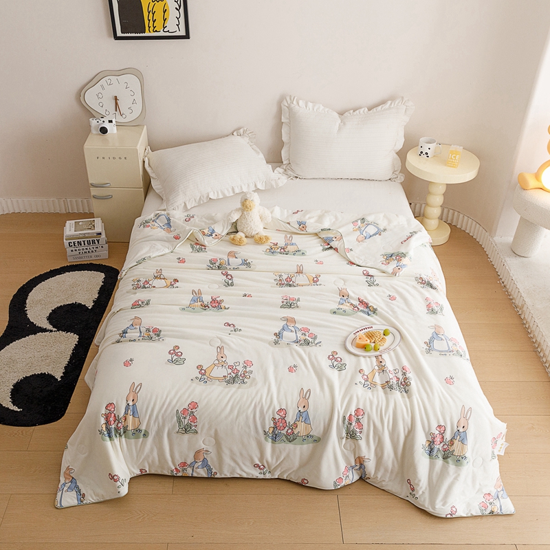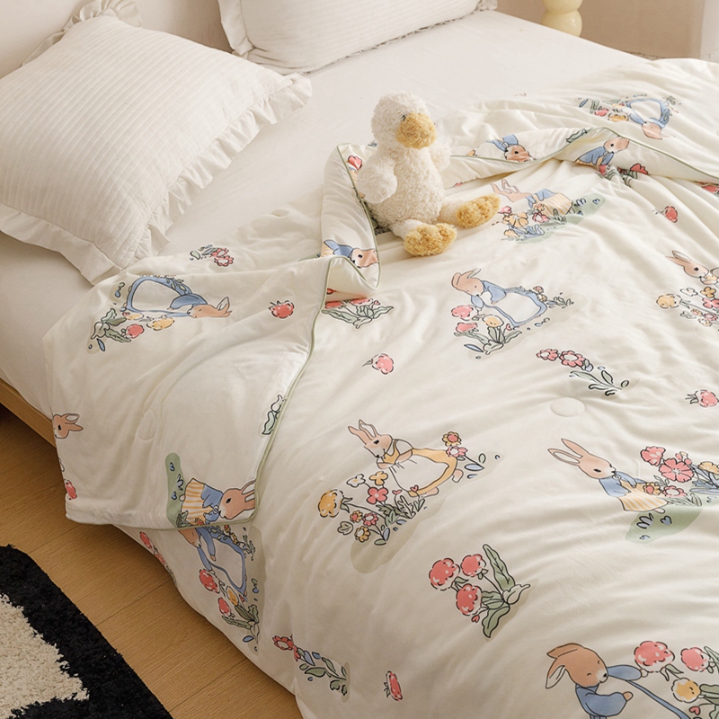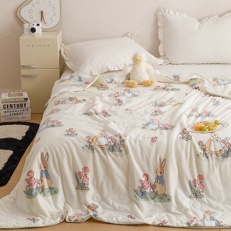 商品名称:优被业 2025新款A类牛奶丝针织棉夏被20%大豆(四周踩棉)软糯夏凉被空调被 花园小兔