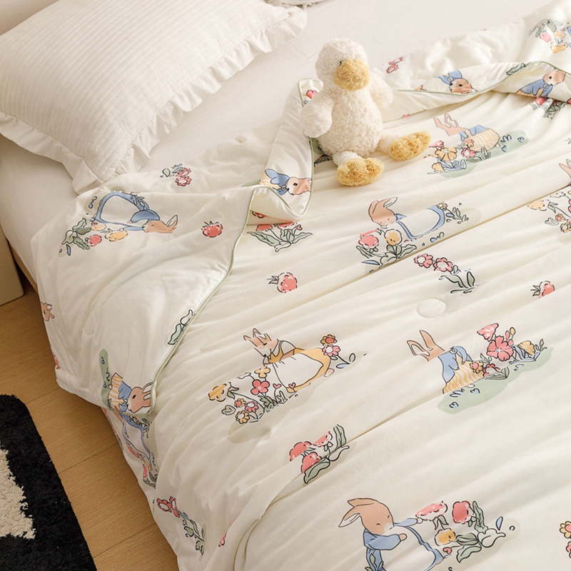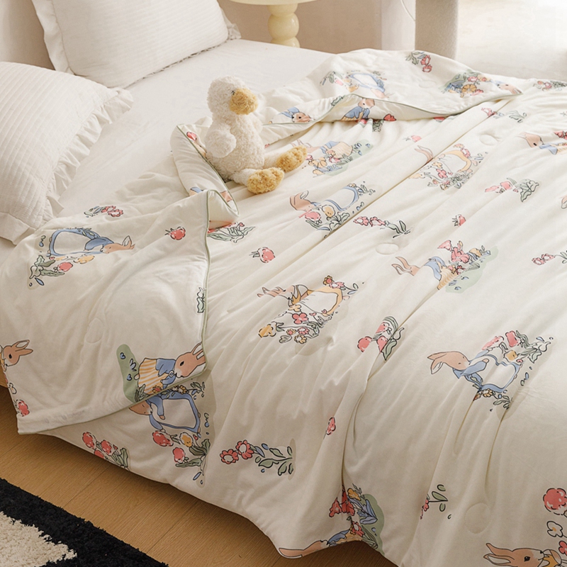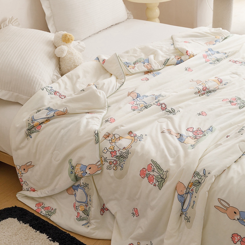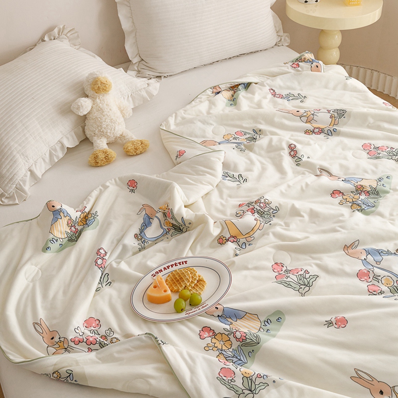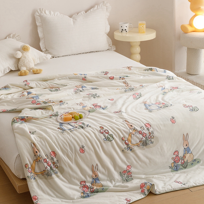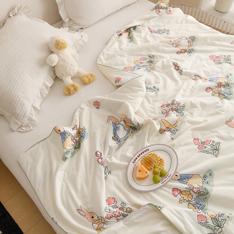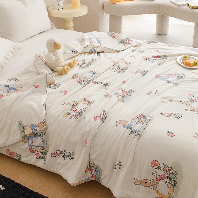商品名称:优被业 2025新款A类牛奶丝针织棉夏被20%大豆(四周踩棉)软糯夏凉被空调被 花园小兔