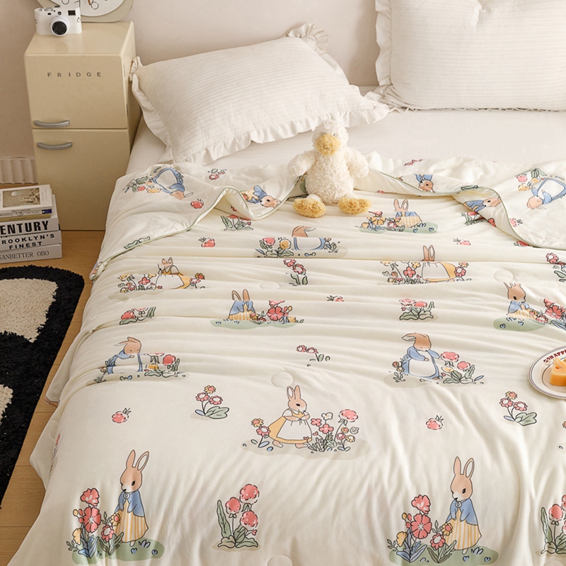 优被业 2025新款A类牛奶丝针织棉夏被20%大豆(四周踩棉)软糯夏凉被空调被 花园小兔
