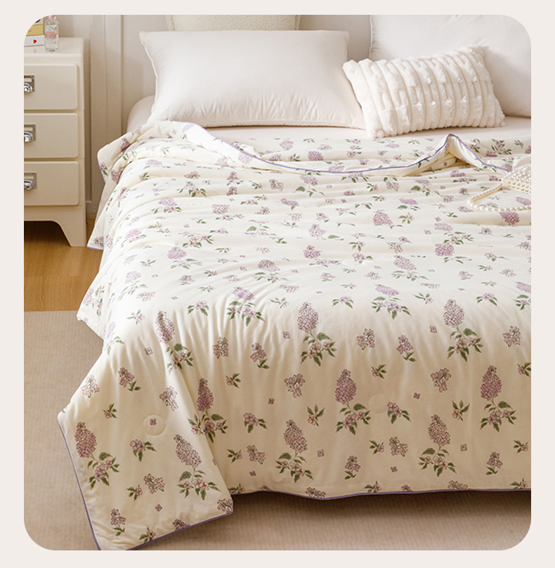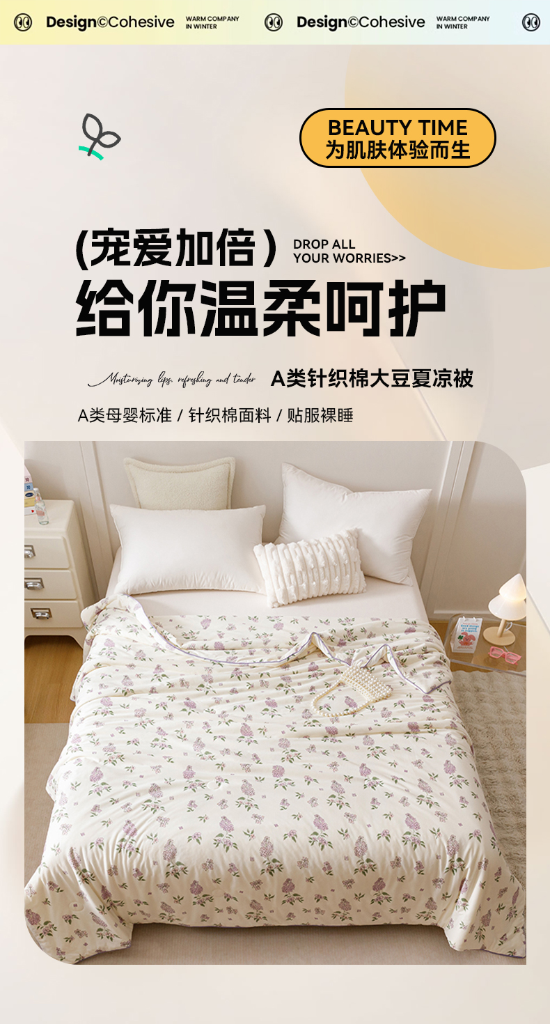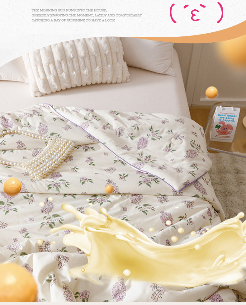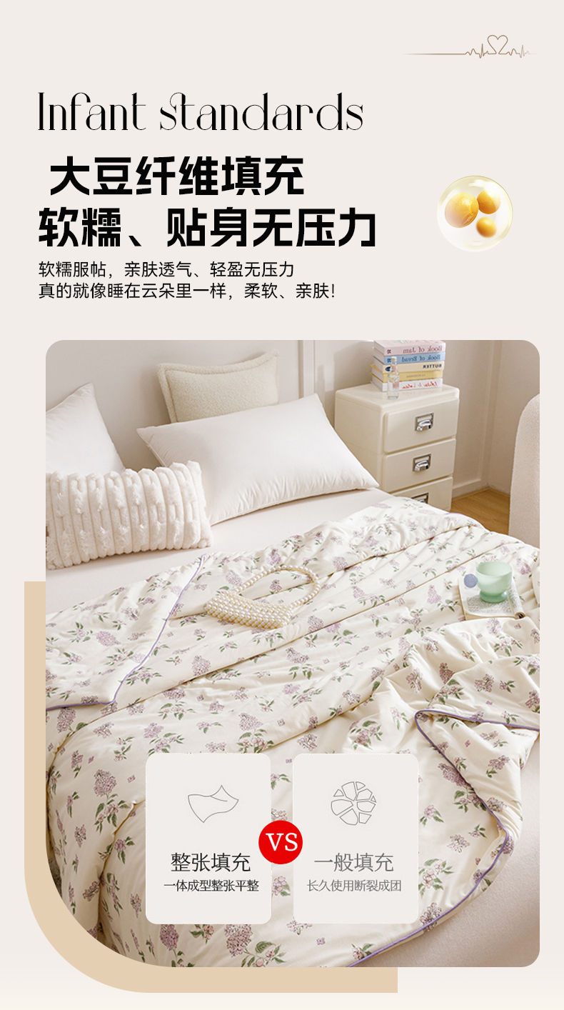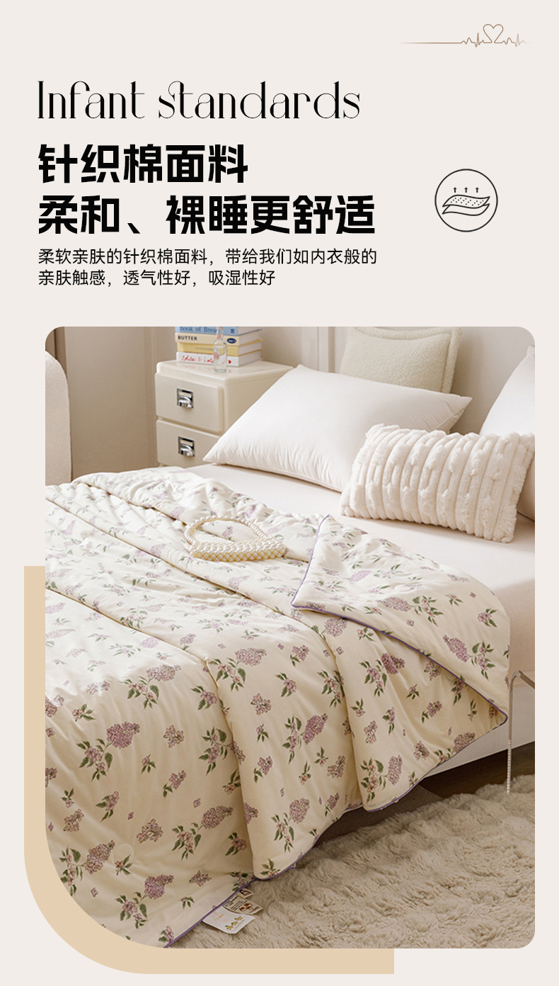 商品名称:优被业 2025新款A类牛奶丝针织棉夏被20%大豆(四周踩棉)软糯夏凉被空调被 紫萱
