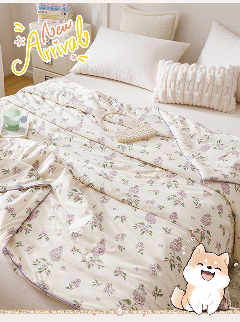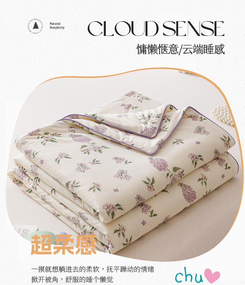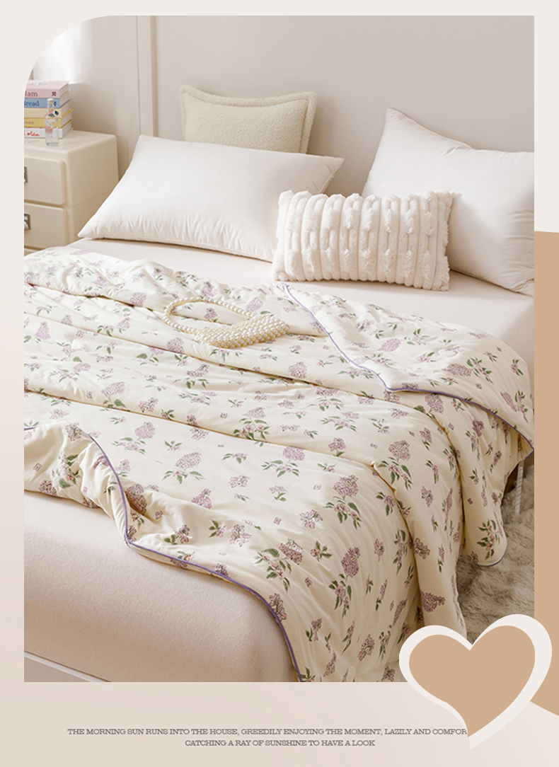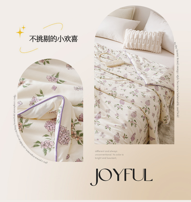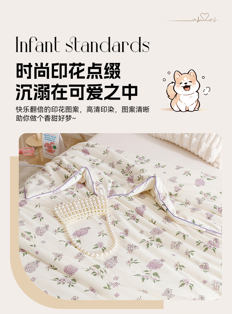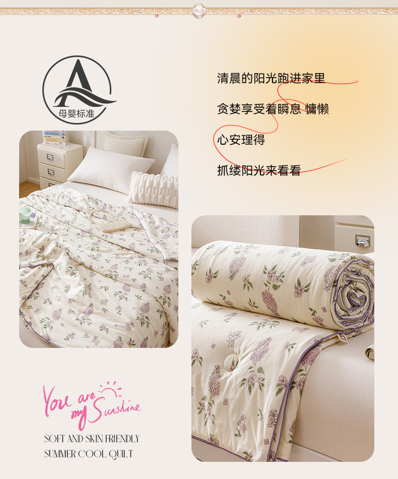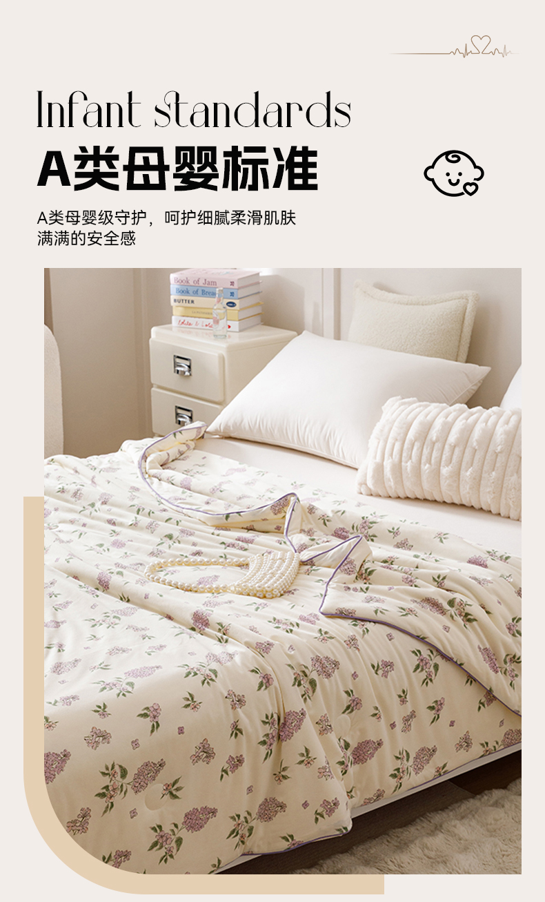 商品名称:优被业 2025新款A类牛奶丝针织棉夏被20%大豆(四周踩棉)软糯夏凉被空调被 紫萱