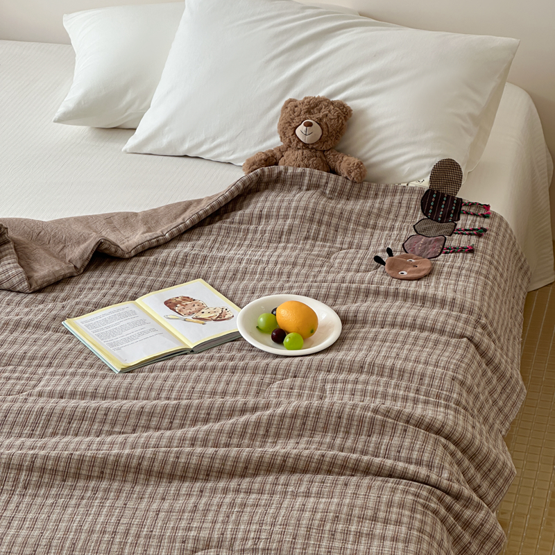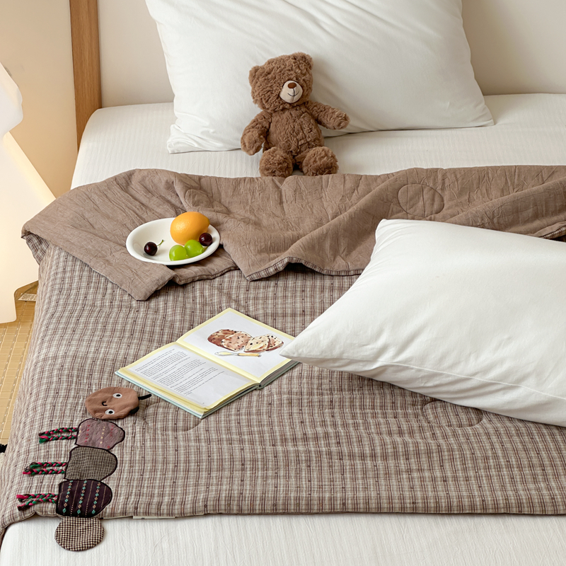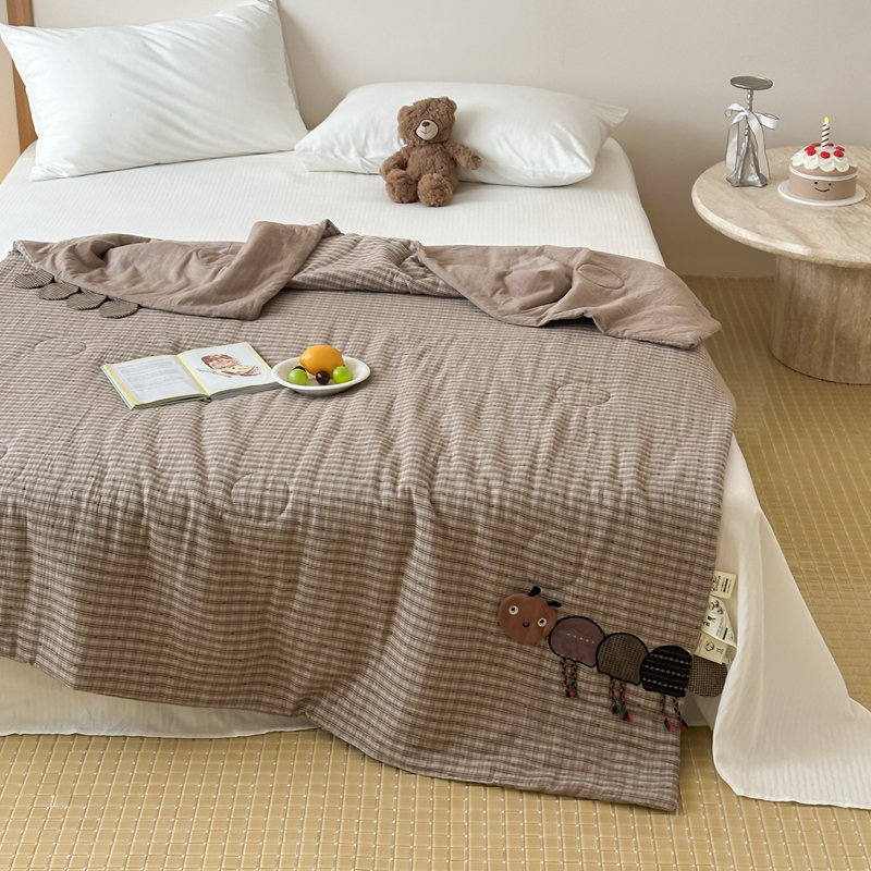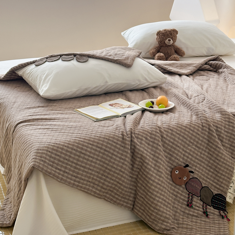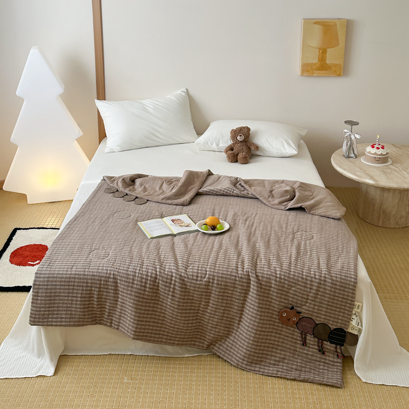 • 91家纺网 家纺一手货源 找家纺 月夏 2025新款全棉双层纱纱布夏被夏凉被空调被 毛毛虫-咖【填充新疆棉花】