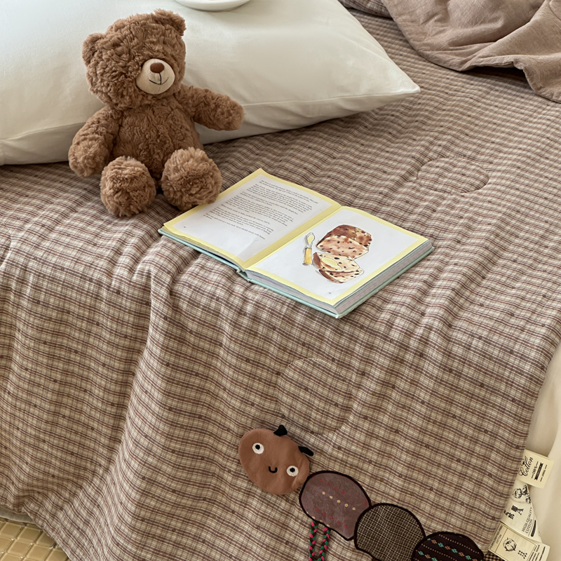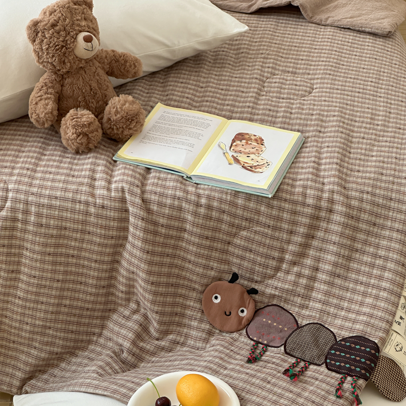 月夏 2025新款全棉双层纱纱布夏被夏凉被空调被 毛毛虫-咖【填充新疆棉花】