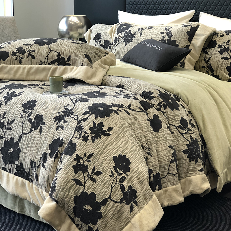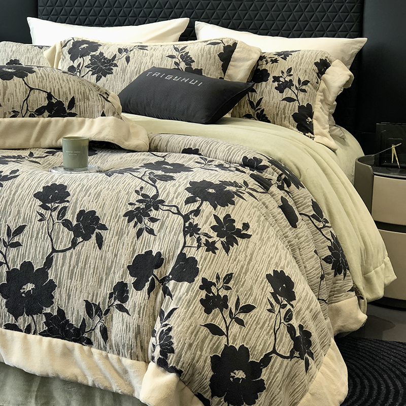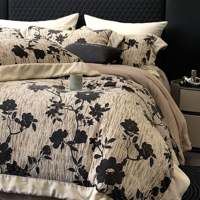 (总)太古汇家居 2025新款高克重牛奶绒四件套-繁花系列,繁花-琥珀杏,繁花-经典紫,繁花-慕斯粉,繁花-水雾蓝
