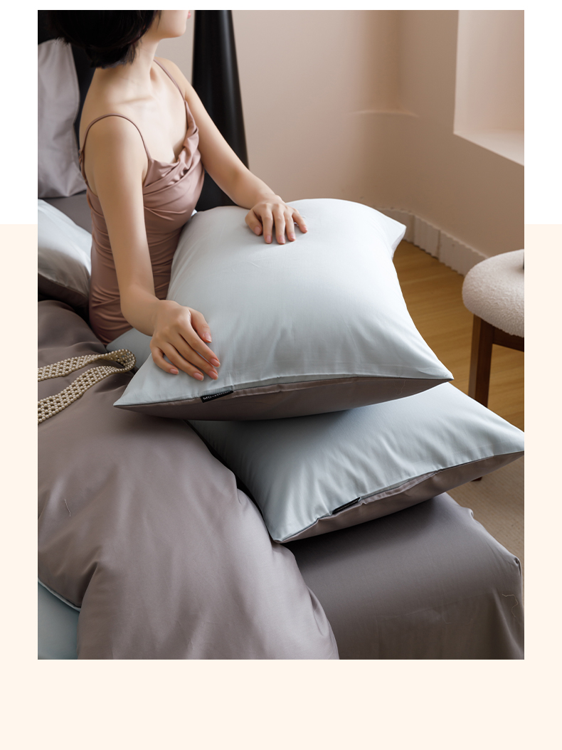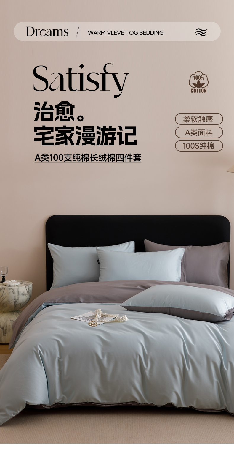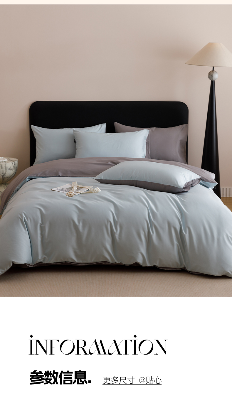 2025新款60支纯棉长绒棉四件套 蓝+暖灰