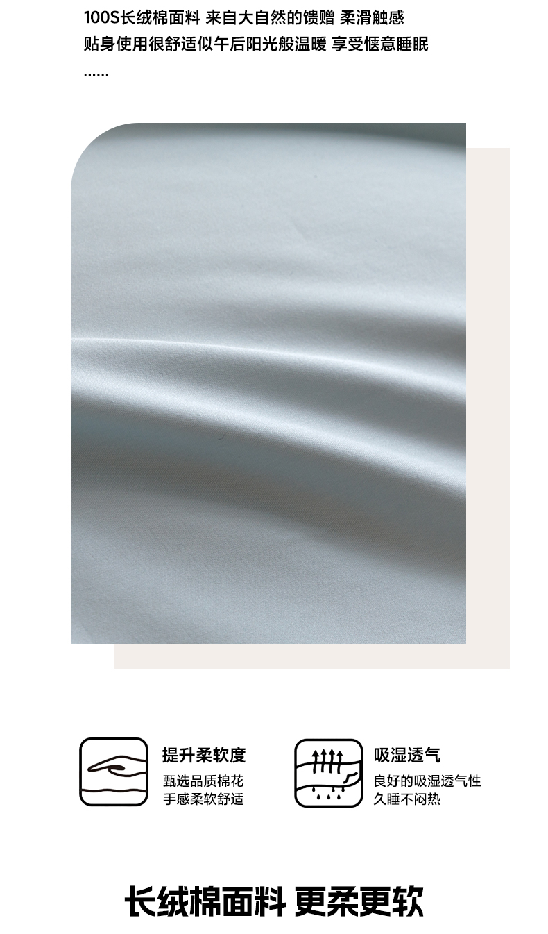 商品名称:2025新款60支纯棉长绒棉四件套 蓝+暖灰