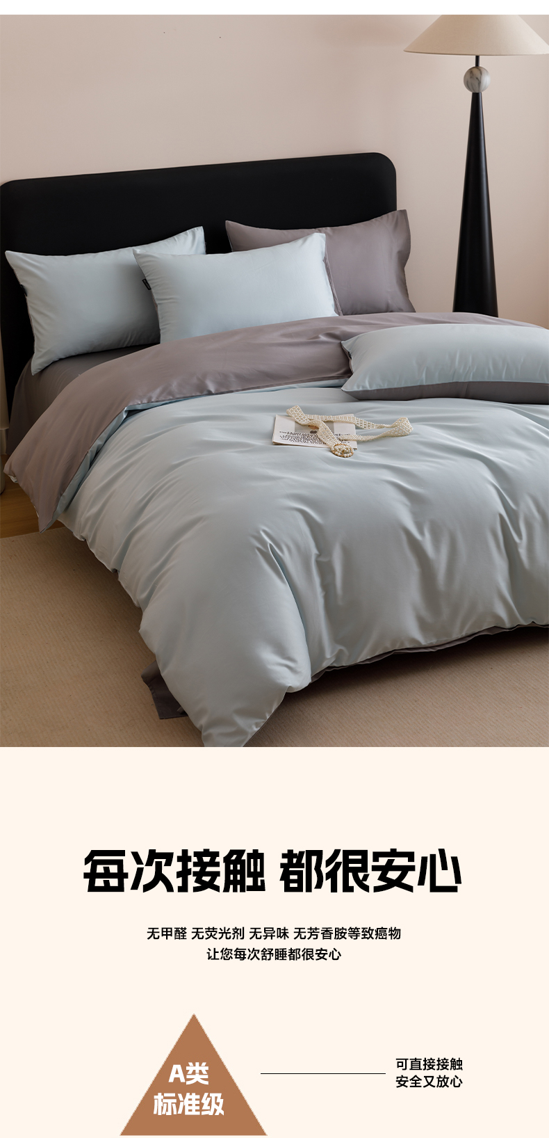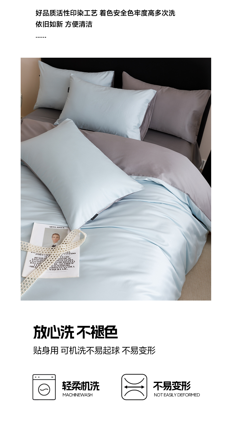 (总)寐绸家纺 2025新款纯棉水洗棉简约双拼大豆纤维夏被四件套,宾利蓝+浅灰,豆沙粉+浅灰,米白+青绿,牛仔蓝+浅灰,浅灰+杏色,天蓝+米黄