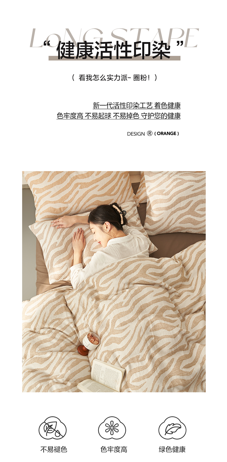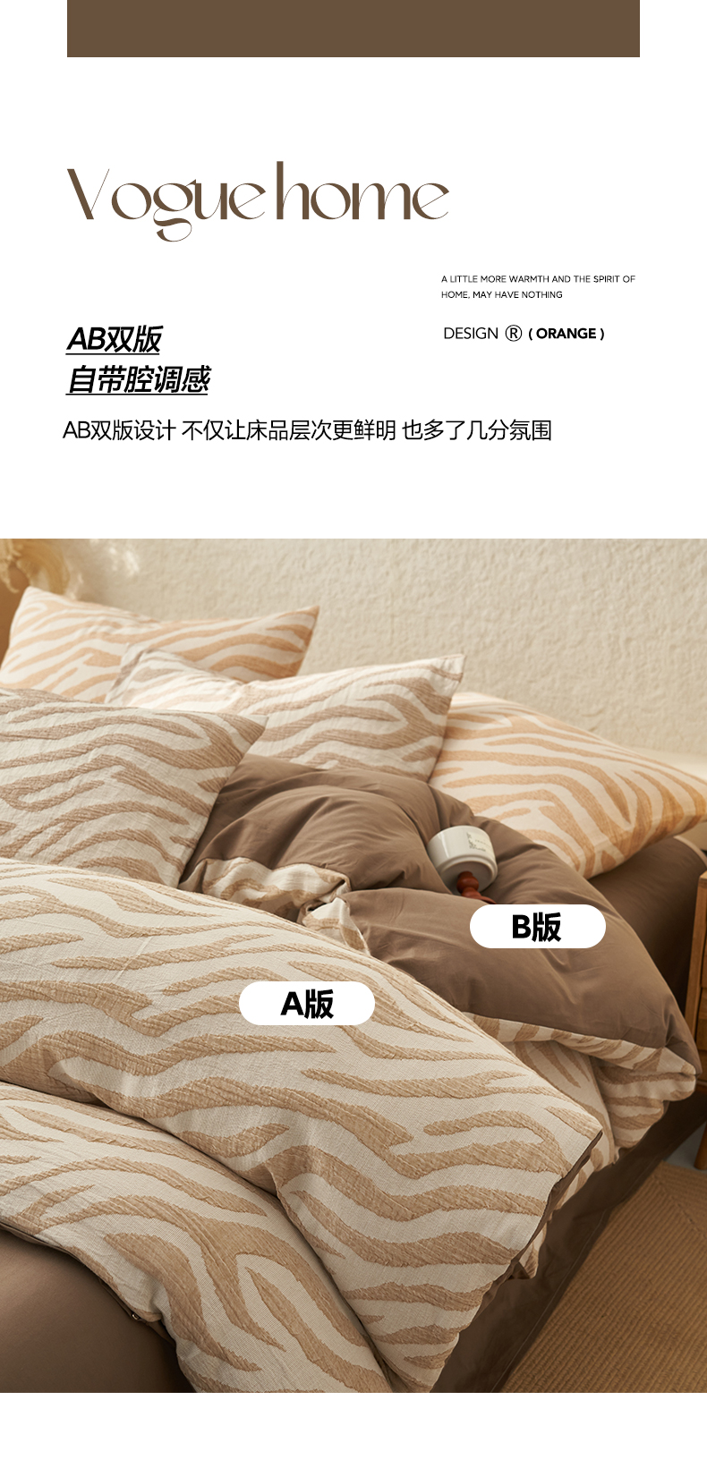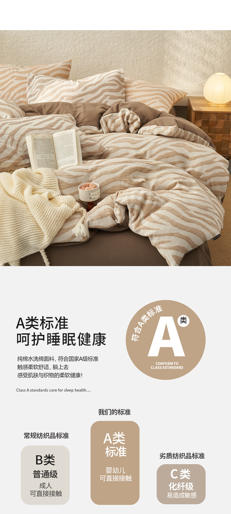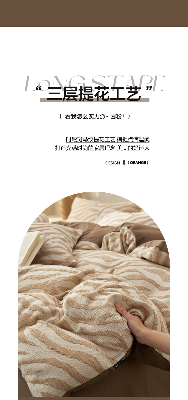 商品名称:2025新款纯棉水洗棉三层斑马纹提花四件套 斑马纹四件套-咖色