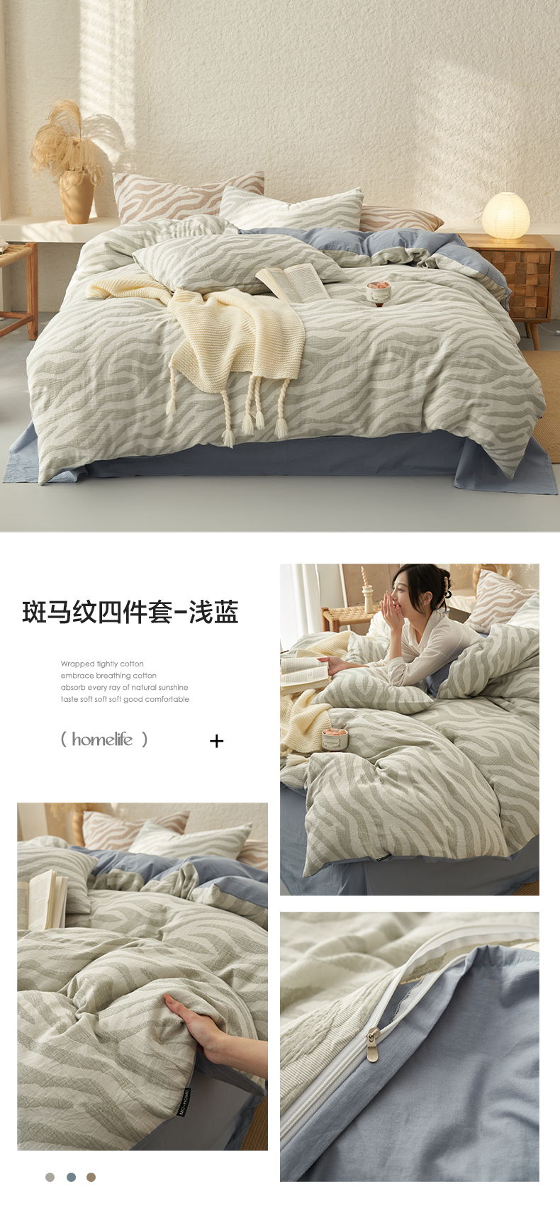 (总)寐绸家纺 2025新款纯棉水洗棉简约双拼大豆纤维夏被四件套,宾利蓝+浅灰,豆沙粉+浅灰,米白+青绿,牛仔蓝+浅灰,浅灰+杏色,天蓝+米黄