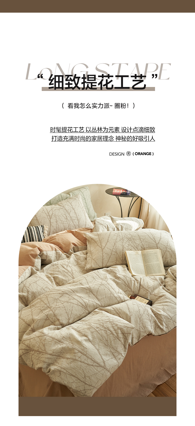 商品名称:2025新款纯棉水洗棉三层丛林提花四件套 丛林四件套-驼色