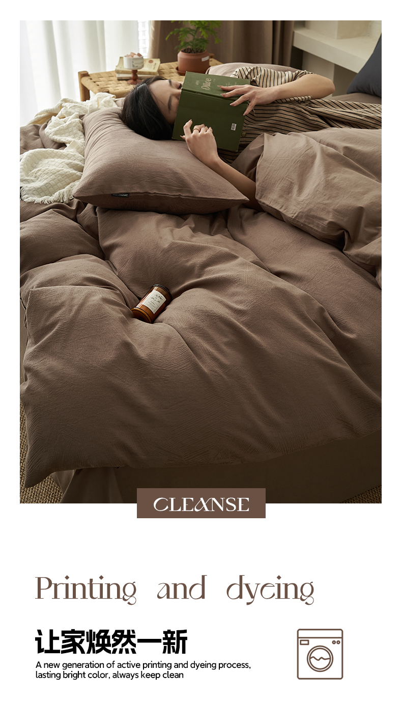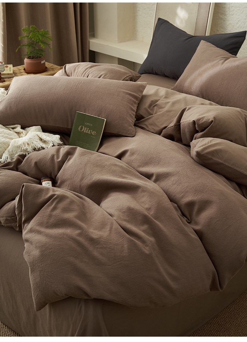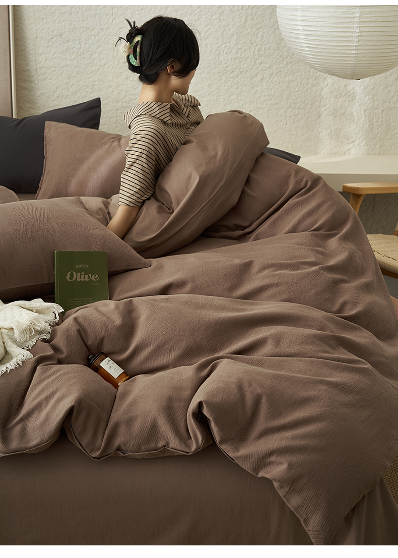 商品名称:2025新款纯棉水洗棉三层肌理纹提花四件套 肌理纹四件套-中灰