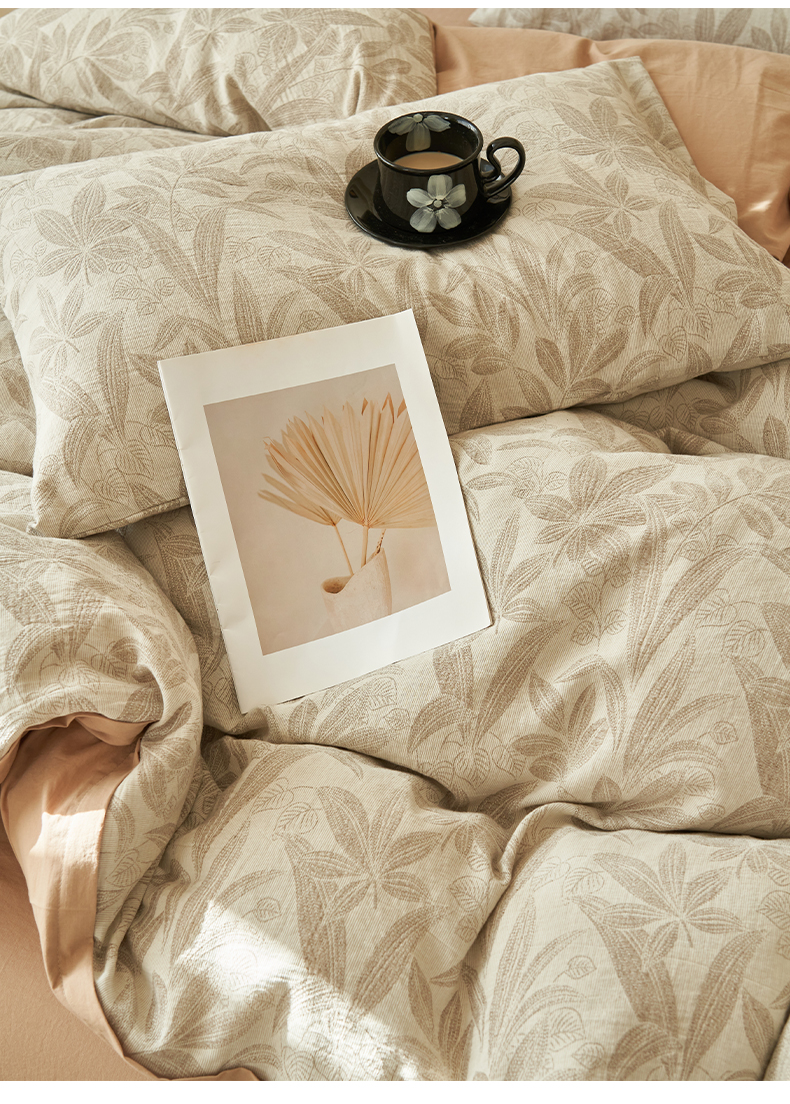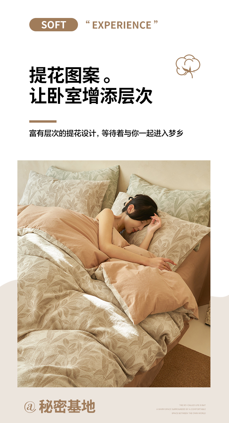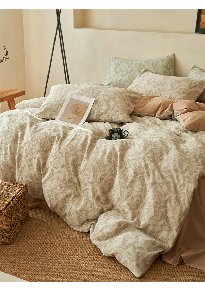 商品名称:2025新款纯棉水洗棉三层纱暗香提花四件套 暗香四件套-驼色