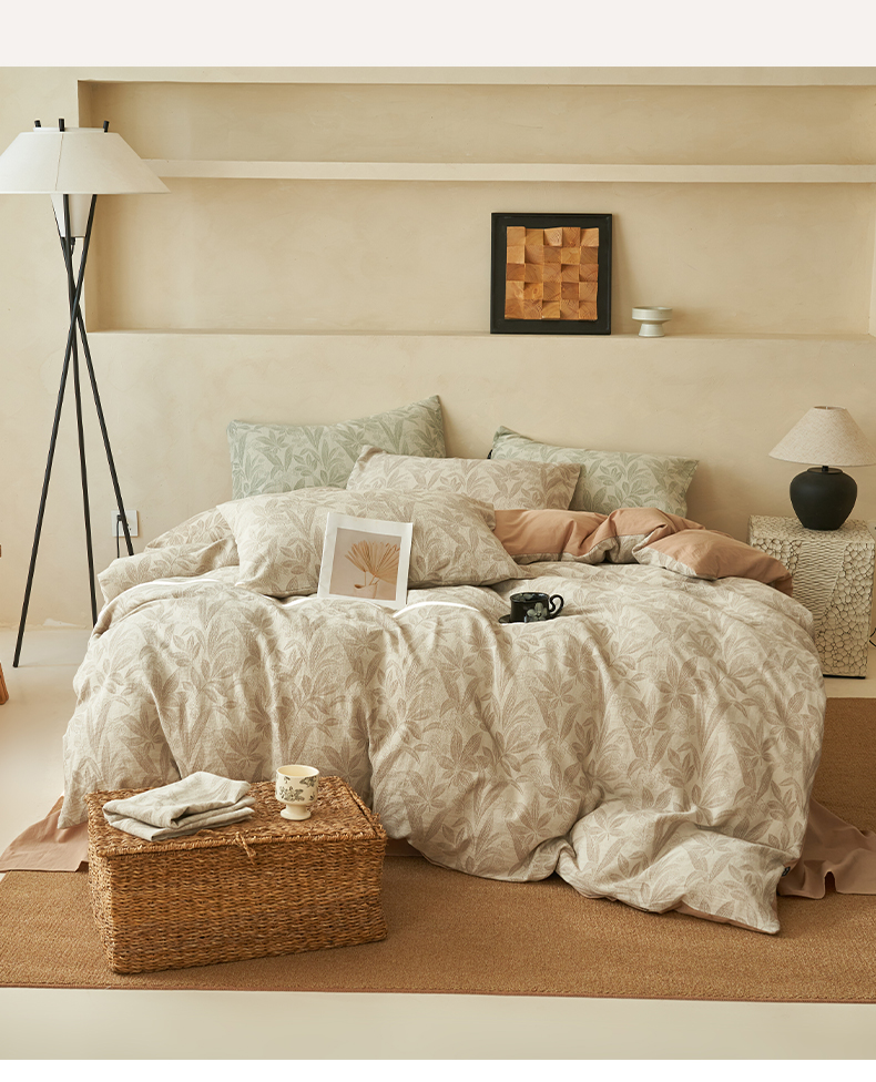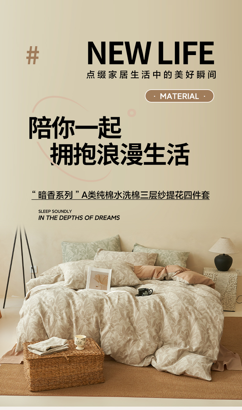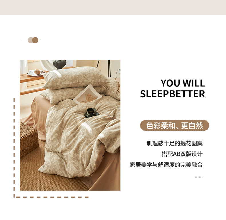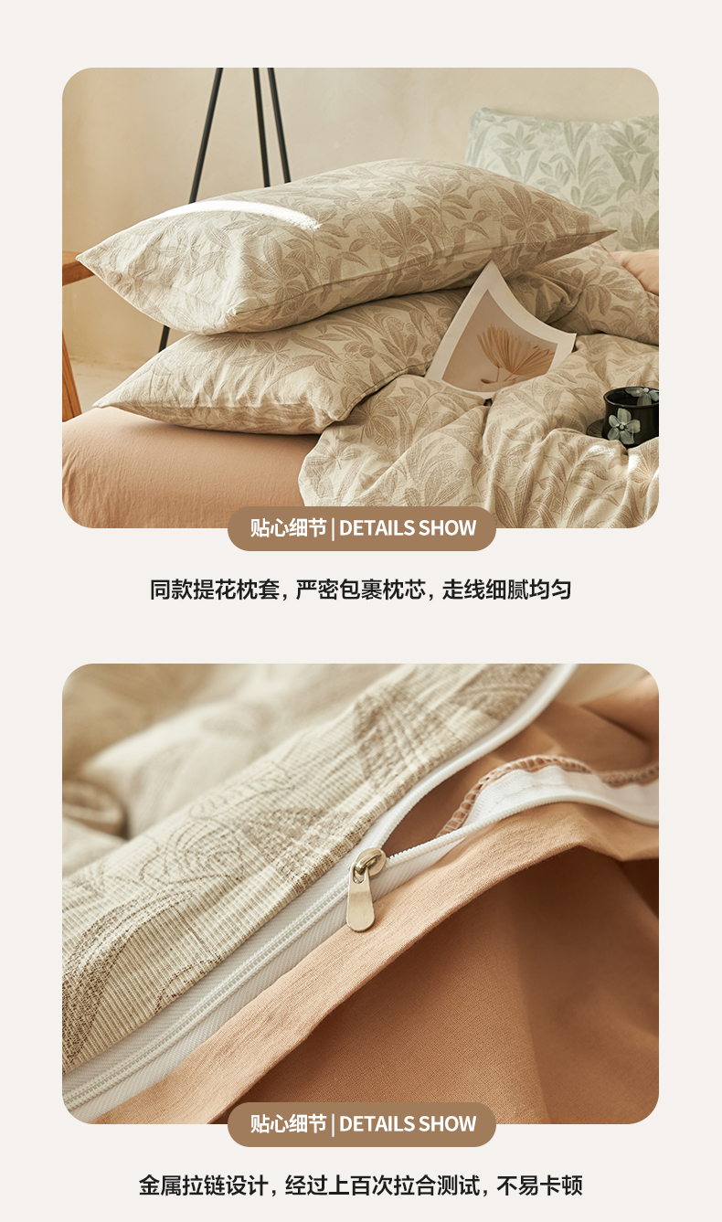 商品名称:2025新款纯棉水洗棉三层纱暗香提花四件套 暗香四件套-驼色