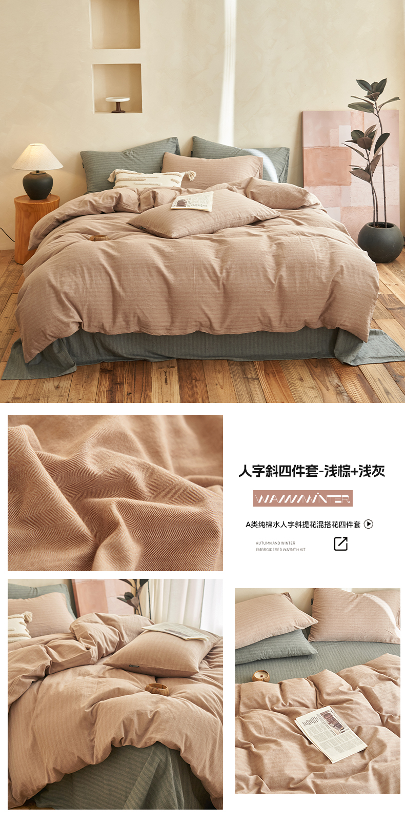当前位置: 91家纺网 > 商品网购 > 床品套件 > 四件套 > 水洗棉四件套 > 2025新款色织水洗棉人字斜提花混搭四件套 人字斜四件套-天蓝+浅灰